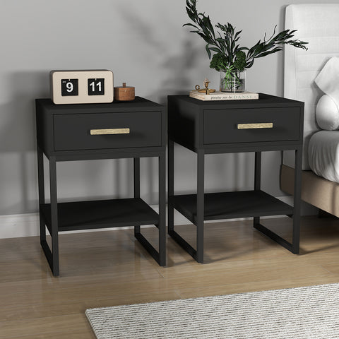 Pair of One Drawer Bedside Tables - Luna Black Range