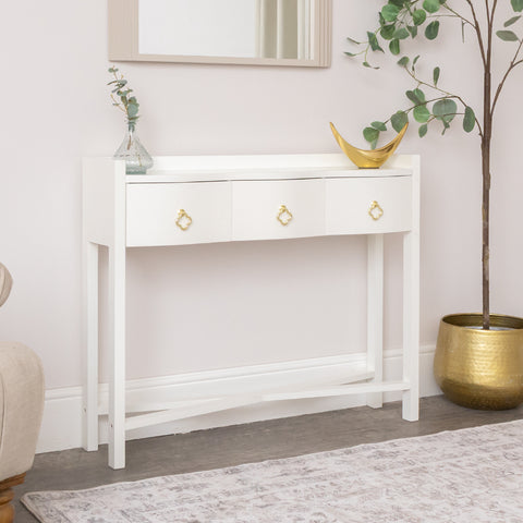 White Painted Curved 3 Drawer Console Table with Glass Top - Austin White Range