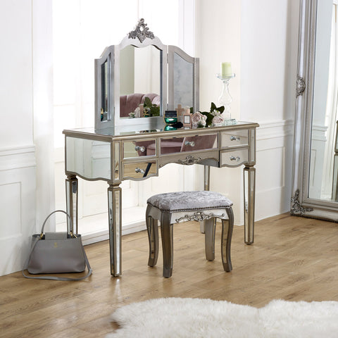 Large Mirrored Dressing Table, Mirror & Stool Set - Tiffany Range