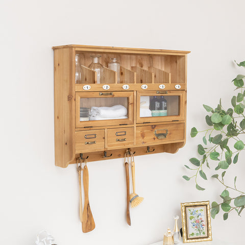 Khaki Green and Wood Wall Cabinet with Clear Glass Front 70cm x 90cm