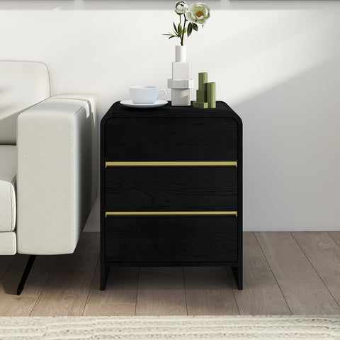 Black 3 Drawer Bedside Table - Meridian Black Range