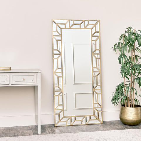 Large Gold Geometric Framed Mirror 70cm x 150cm