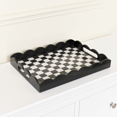 Rectangle Black Monochrome Checked Scalloped Tray