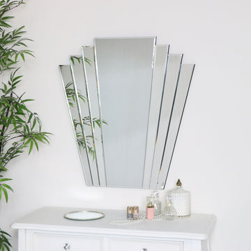 Green & Pink Glass Art Deco Fan Wall Mirror 60cm x 40cm