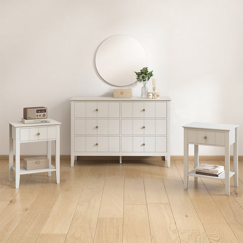 Ivory 6 Drawer Chest Of Drawers & Pair Of One Drawer Bedside Tables - Padstowe Ivory Range