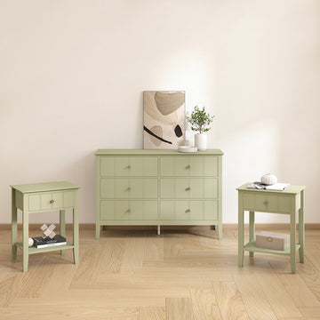 Sage Green 6 Drawer Chest Of Drawers & Pair Of One Drawer Bedside Tables - Padstowe Sage Green Range