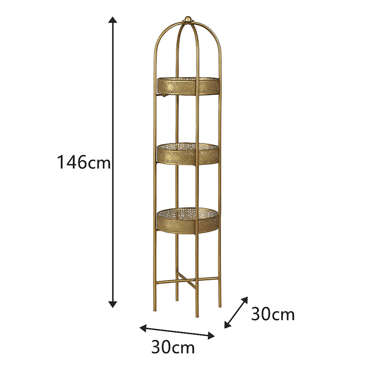 This Antique Gold Four Tier Freestanding Shelf is designed to bring both beauty and practicality to your space, this shelving unit features four generously sized round tiers, each finished in a stunning antique gold tone with delicately embossed detailing. It’s tall, slim silhouette makes it perfect for adding stylish storage to smaller spaces, while the arched frame creates a timeless and luxurious look. Ideal for bathrooms, living rooms, or hallways! Ideal for displaying perfumes, candles, plants, towels and toiletries.Crafted with a metal structure combined with artistic charm, ensuring it remains a standout feature in your home. The warm gold finish complements a wide range of interior styles, from modern glamour and boutique chic to vintage inspired decor. Browse our full Furniture collection to view more!