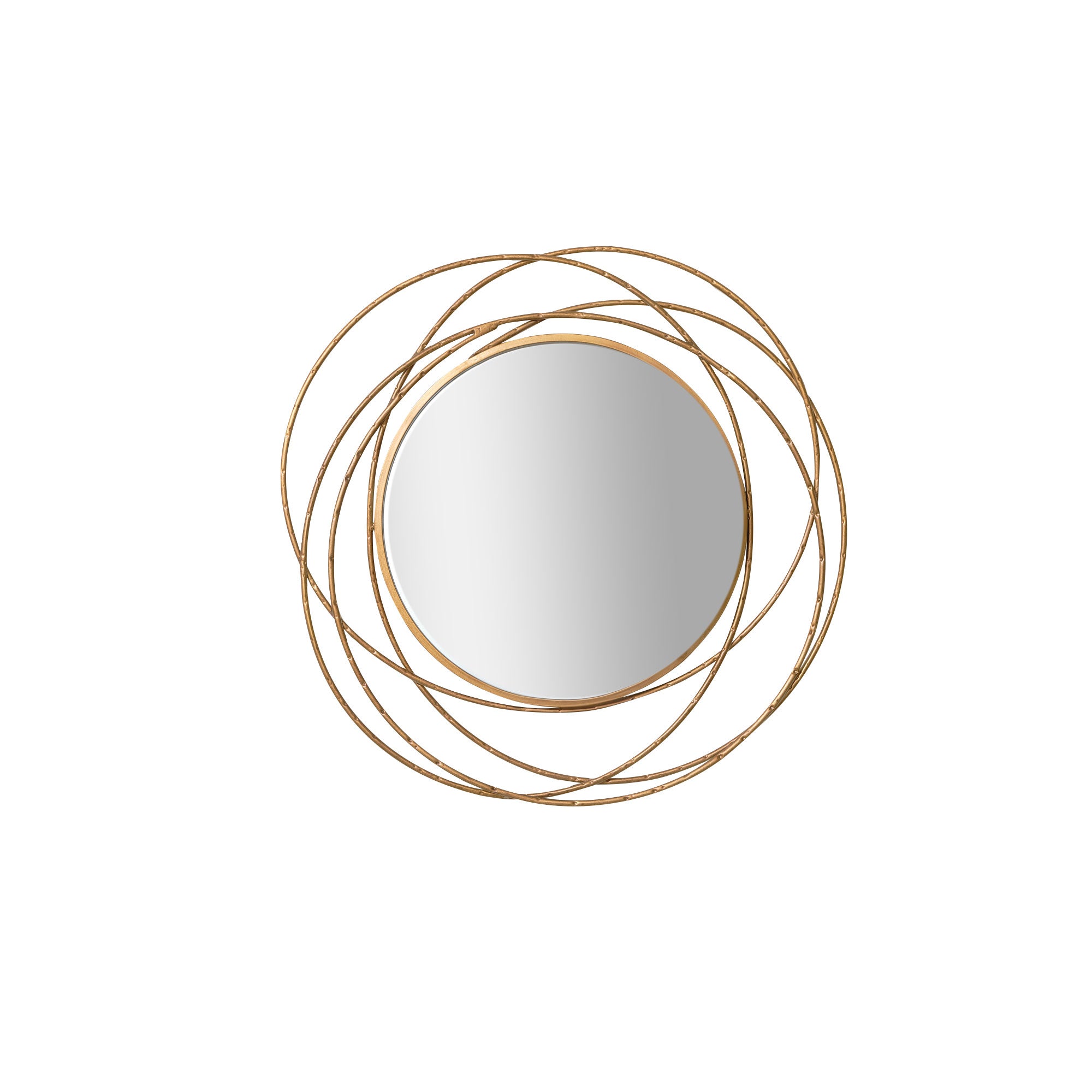 This Antique Gold Swirl Wall Mirror is a bold, minimalist style wall mirror, perfect for mounting above a fireplace, console table or bathroom vanity. Made of metal, wood and glass, this mirror has a swirl frame and a gold finish. It can be wall mounted via hooks on the back.