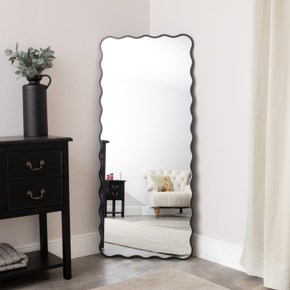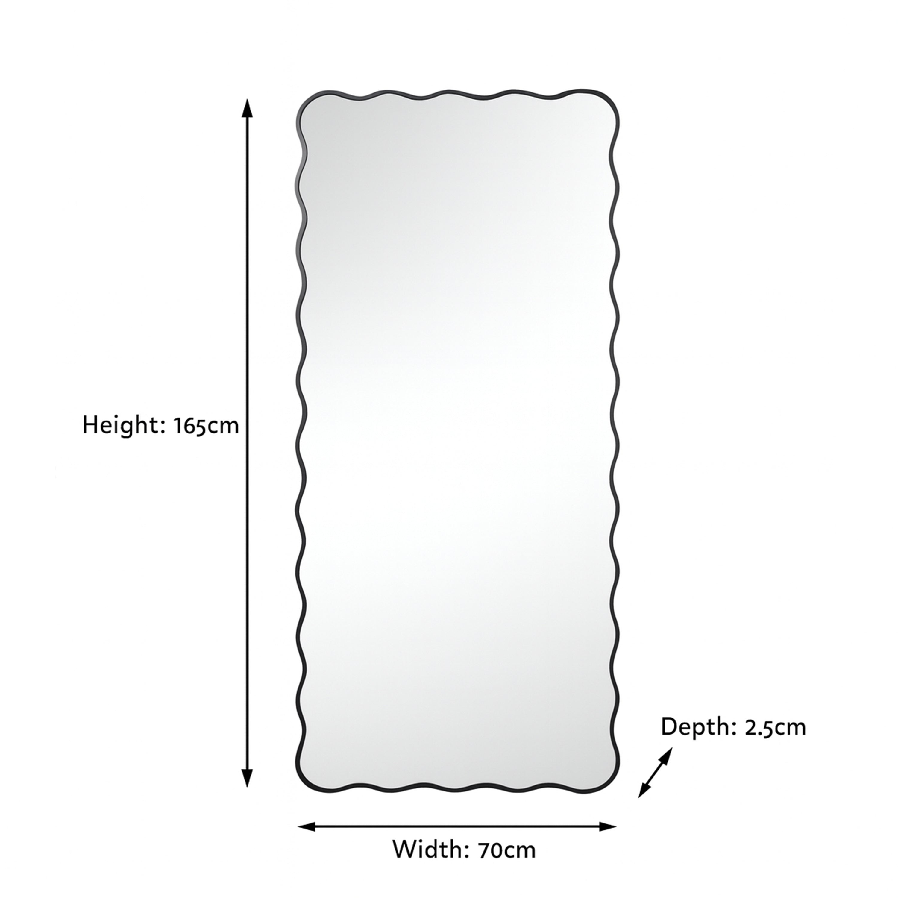 Black Full Length Wavy Mirror - 70cm x 165cm