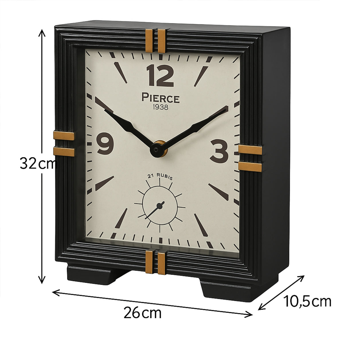 Black & Gold Metal Square Table Top / Mantel Clock 32cm x 26cm