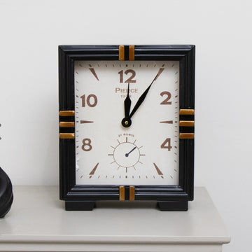 This Black & Gold Metal Square Table Top / Mantel Clock 32cm x 26cm is a lovely decor choice for fans of black and gold decor and metallic finishes. This clock has a square shape and a classic design, including traditional number design with black time hands.