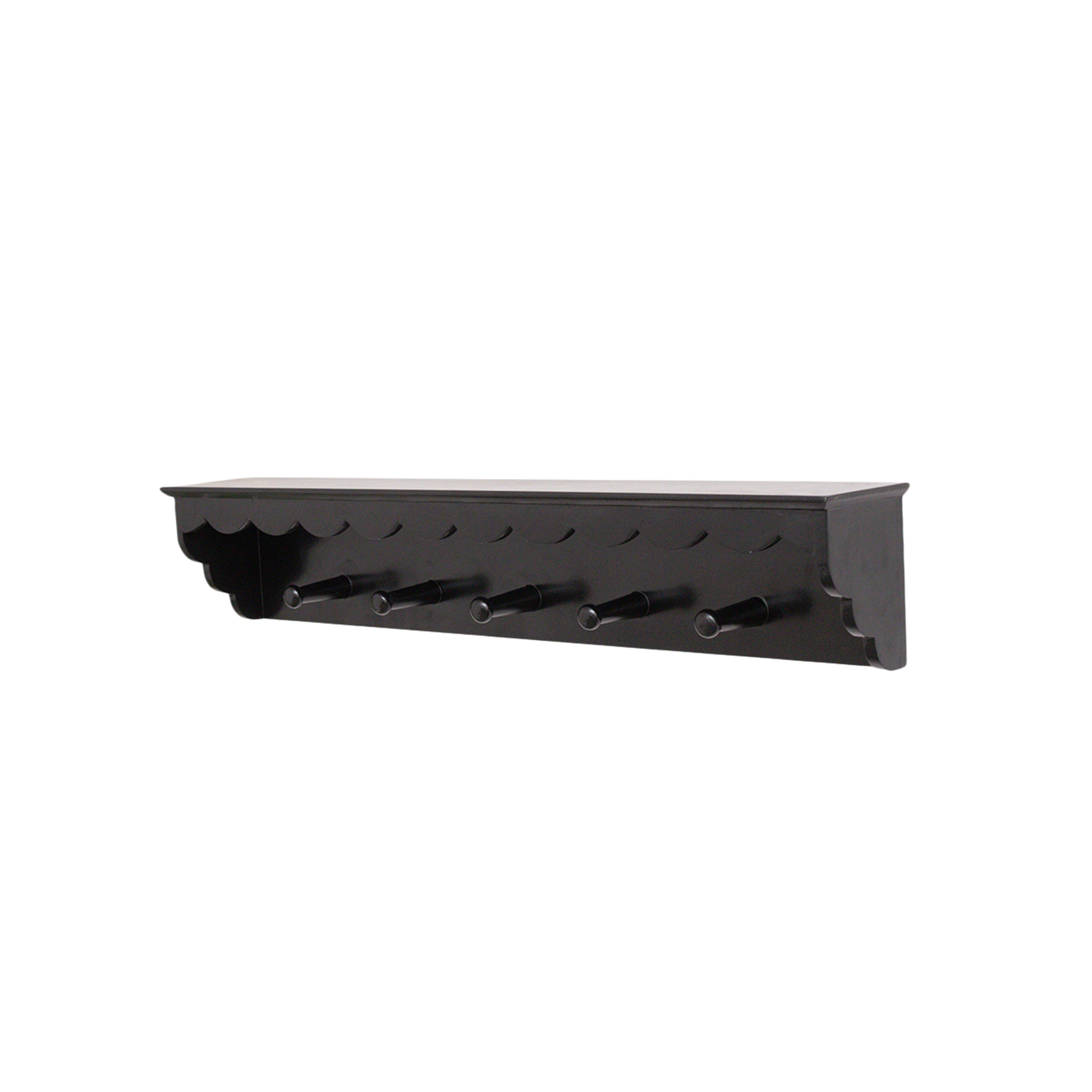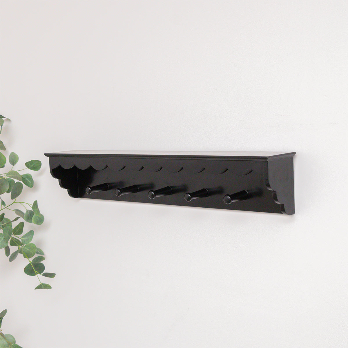 Black Painted Scalloped Edge Coat Peg Rail Hooks with Shelf - 80cm