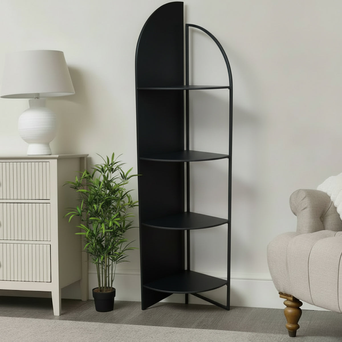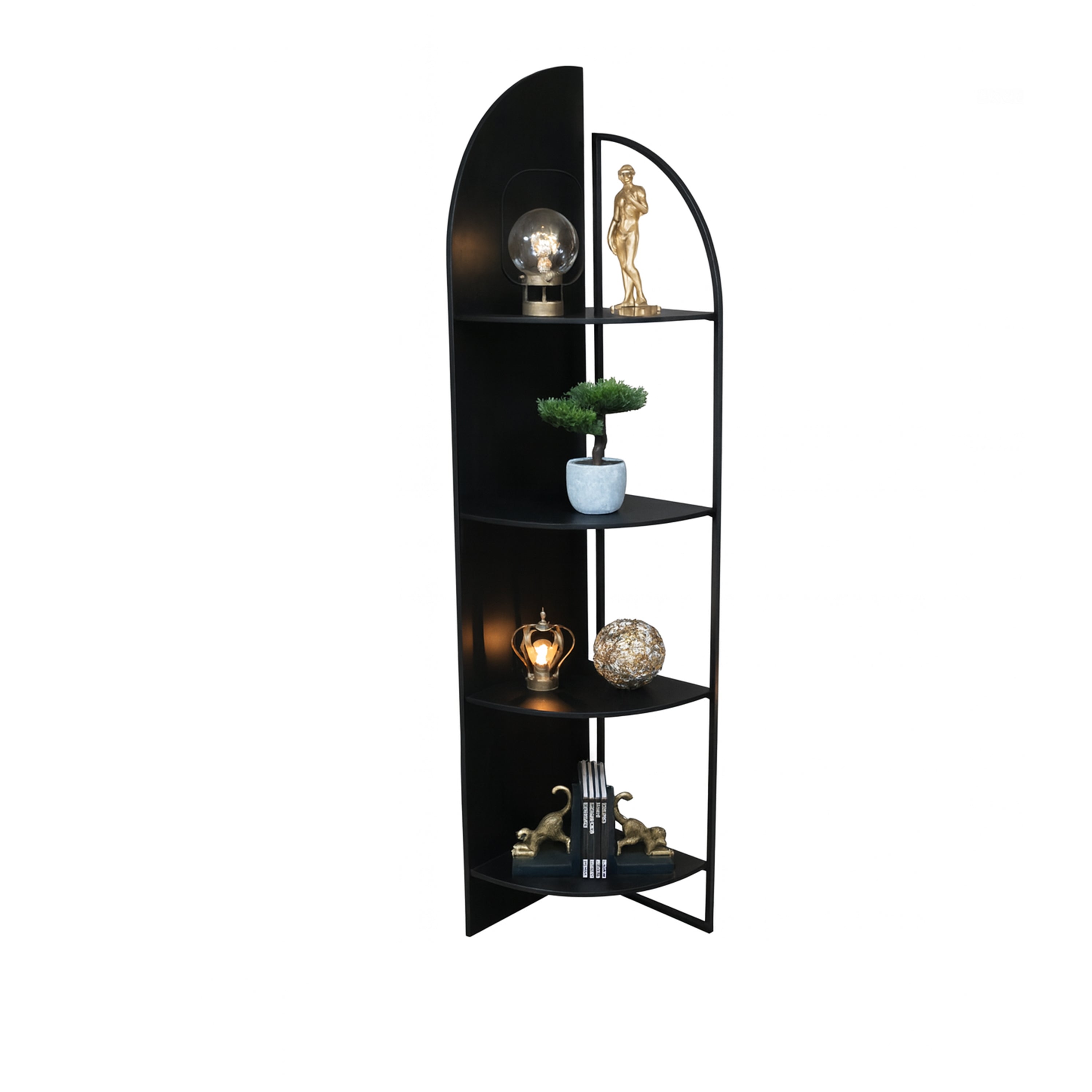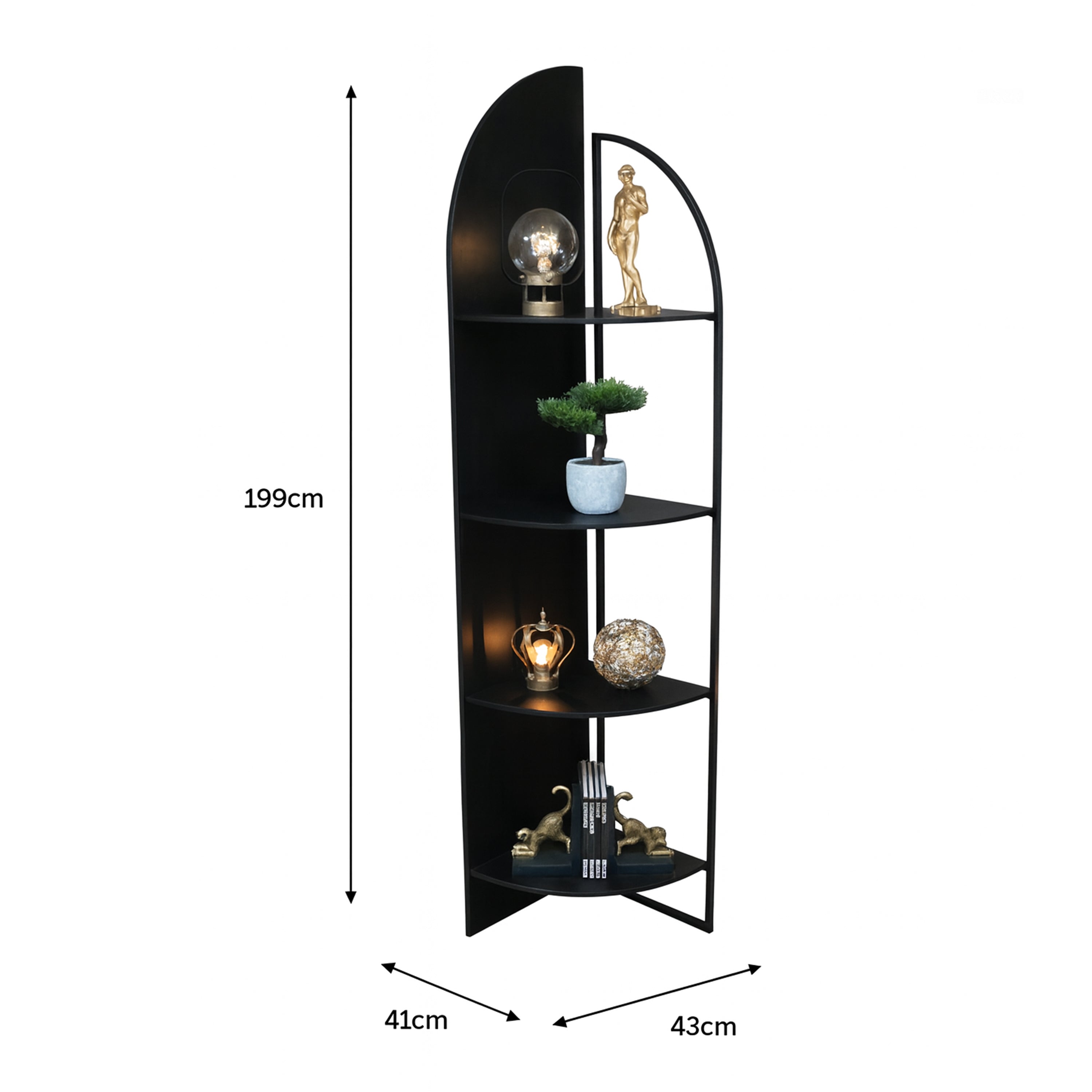 This beautiful Freestanding Black Corner Shelf is an industrial style shelving unit, perfect to keep your space organized. Made of metal with a Black finish. Sleek and modern, this stylish shelving piece can easily blend into a variety of rooms and interior styles.