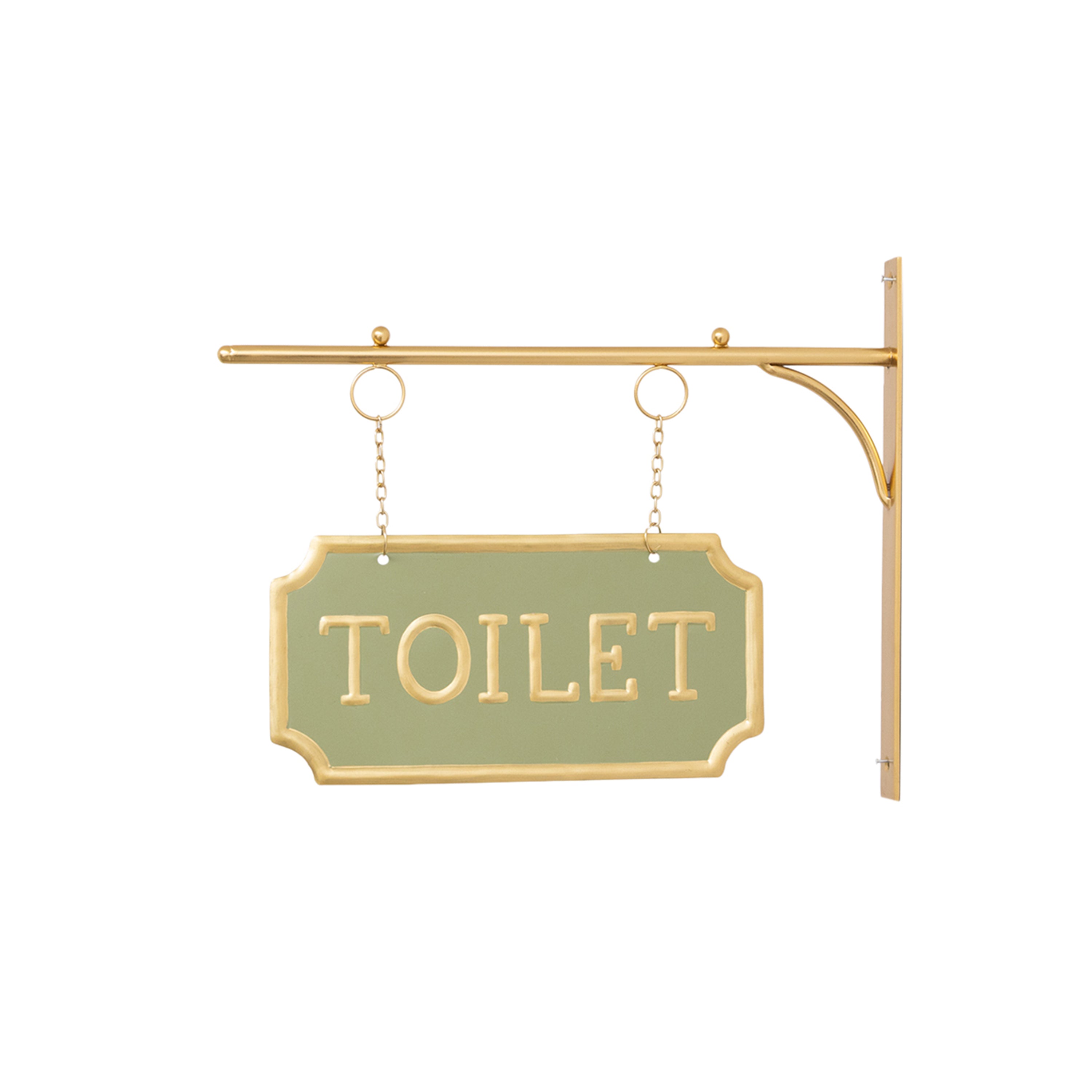 Gold and Sage Green Metal Wall Mounted Hanging Toilet Sign