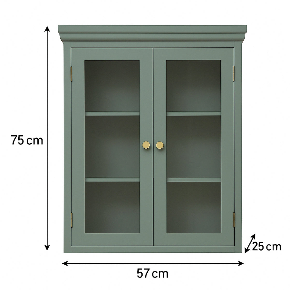 This wall cabinet has three internal storage shelves. A stylish colour and ideal storage for displaying toiletries, glassware or books. Due to it's green finish and traditional style, this wall cabinet could blend into a wide variety of interior styles such as vintage, modern or eclectic homes.