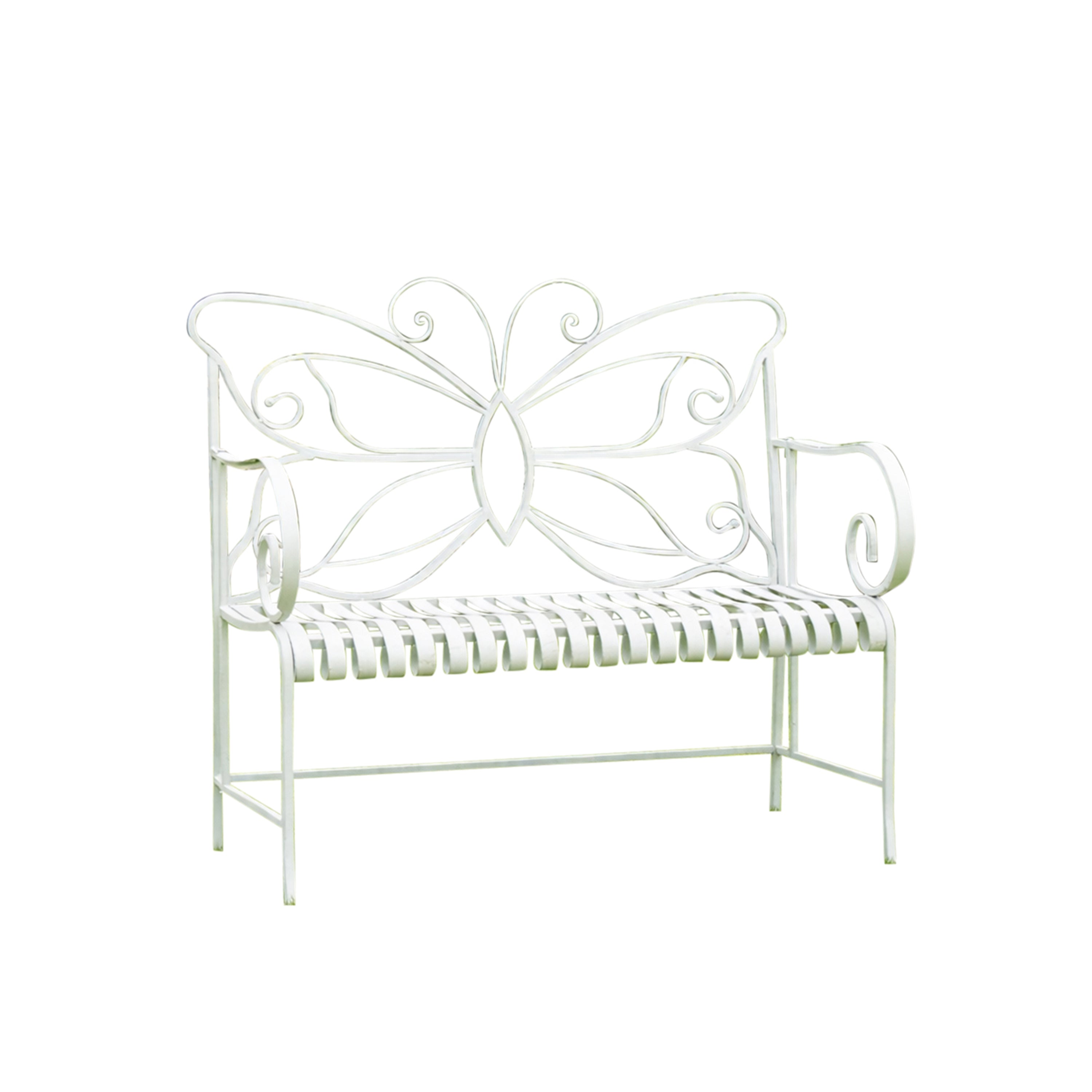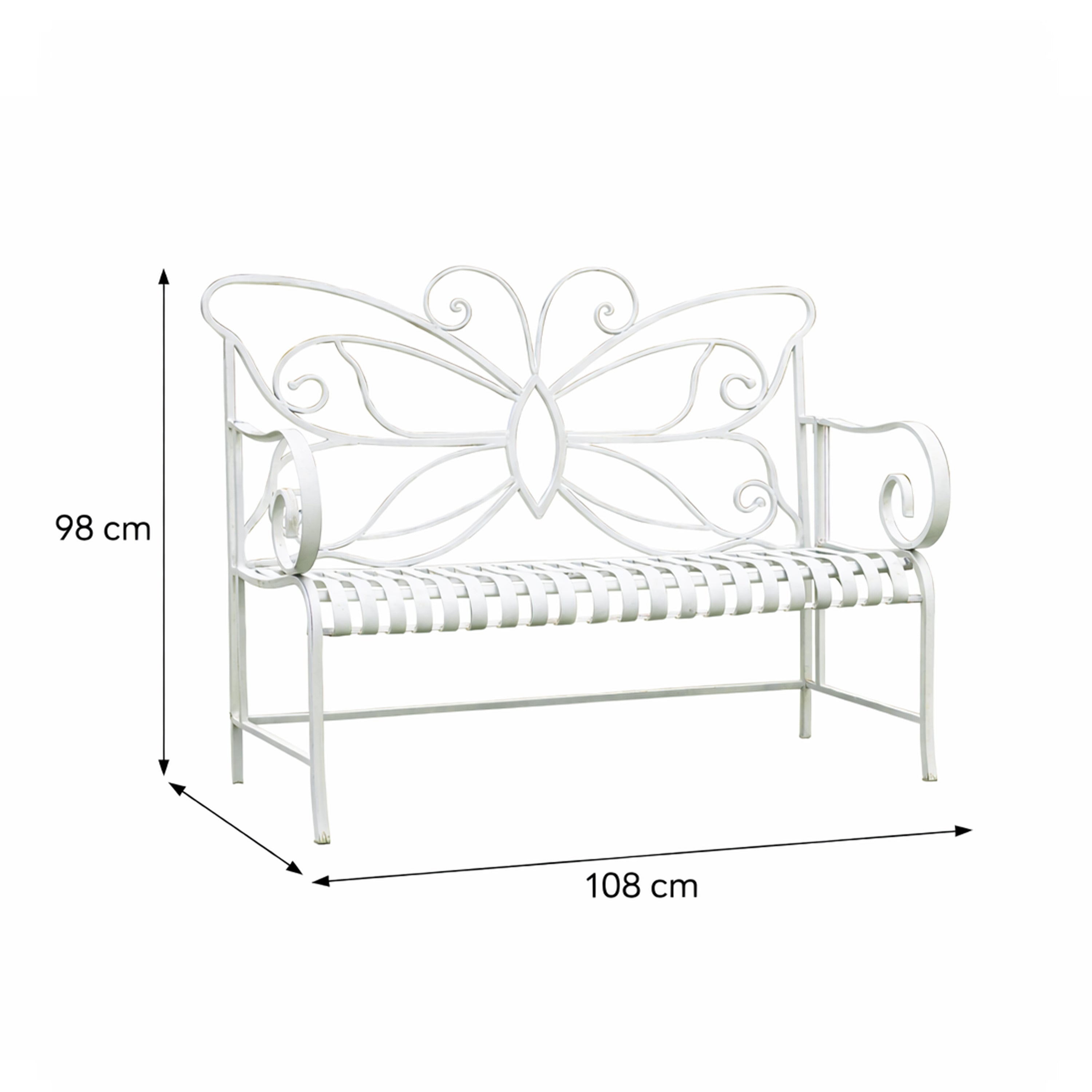This Grey Metal Butterfly Garden Bench would make the perfect addition to your outdoor garden space or patio area. Made of metal, this bench has a vintage design with a curved butterfly, ornate detailing and a distressed, grey finish.