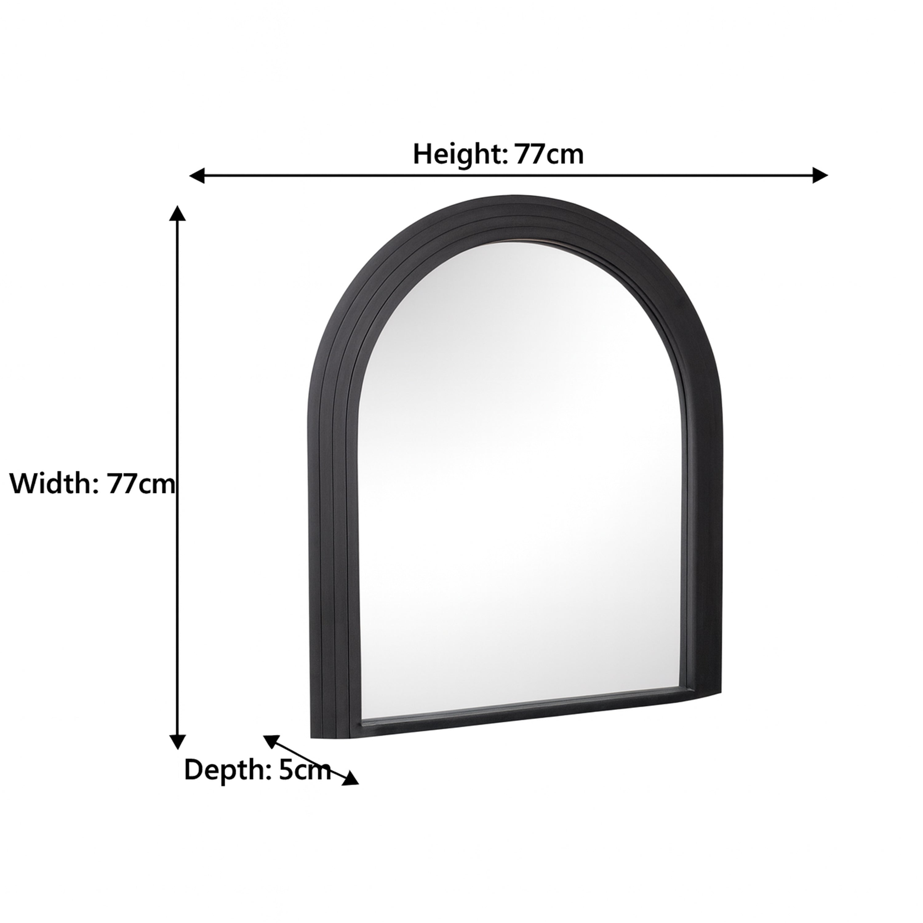 Large Black Arched Wall Mirror - 90cm x 77cm