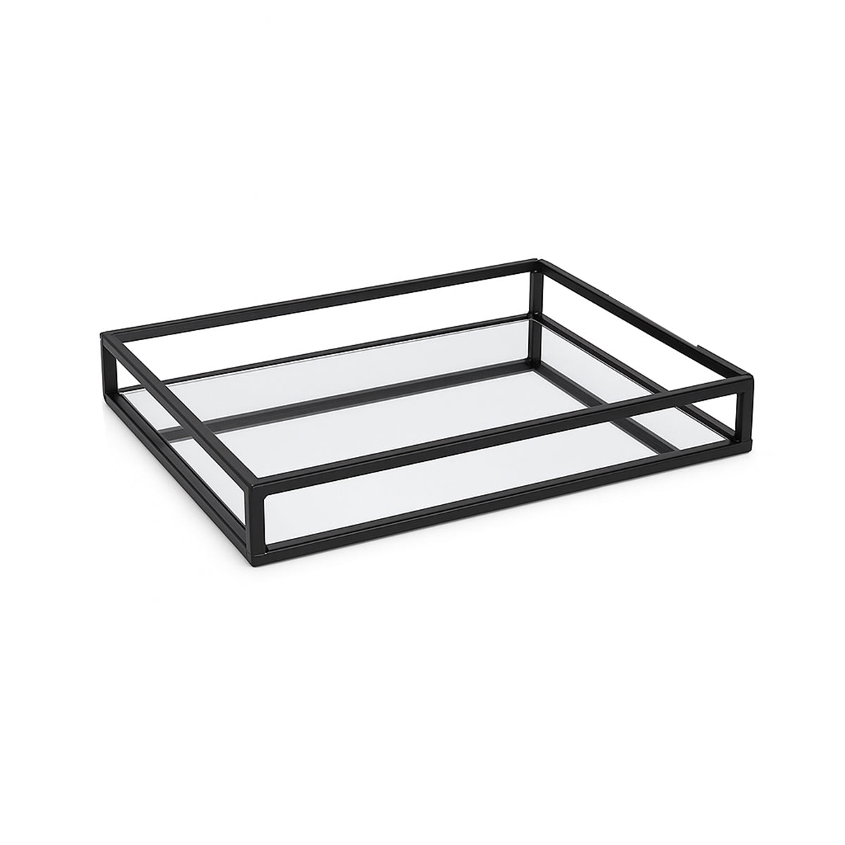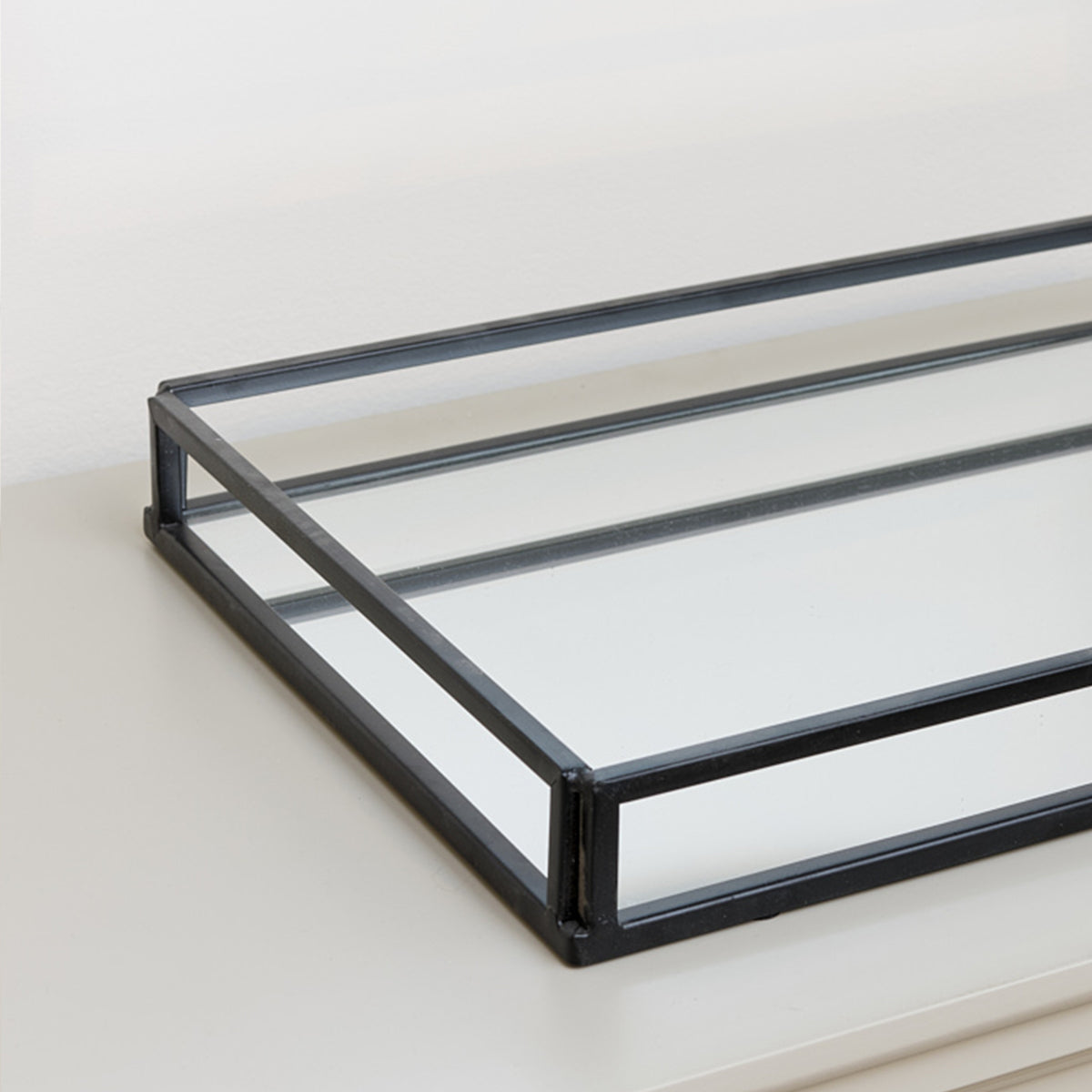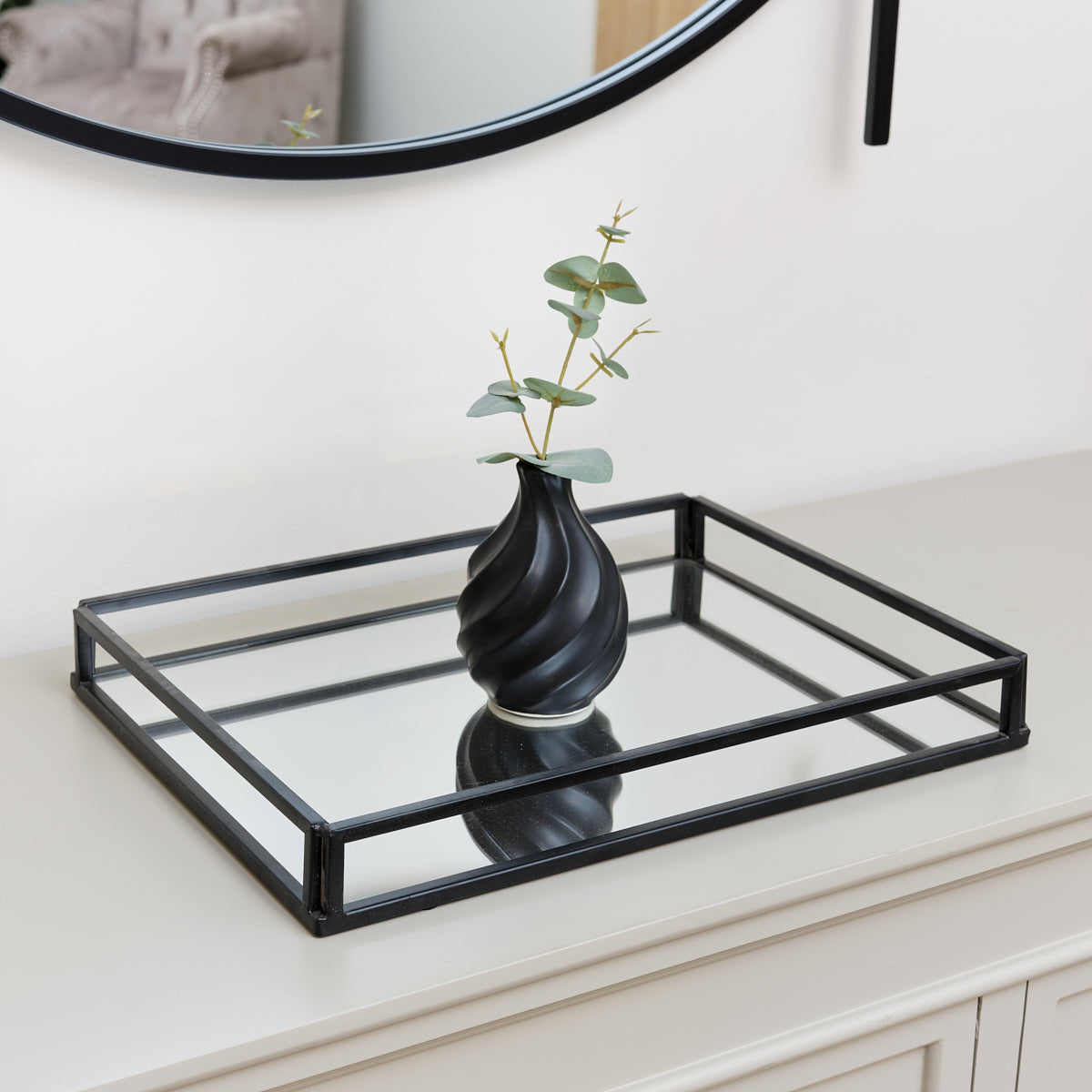 This gorgeous mirrored black display tray is perfect for displaying your accessories or for serving food and drinks when guests come over. Perfect for Living rooms, Dining rooms, Kitchens or Bedrooms to display candles, photo frames, jewellery or plants! Add practicality and style to your home at the same time. The reflective mirrored base enhances the sense of light and depth around it’s room helping to open up that space! This mirrored tray could also be used as a chic centerpiece or an organiser for your dressing table providing both versatility and aesthetic appeal. Due to it’s size and being light weight this tray is easily moved around and rearranged as needed. The combination of it’s clean lines and mirrored surface makes it the ideal decor choice for modern, industrial or minimalist interiors.