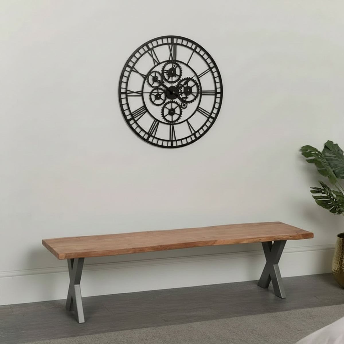 This Large Dining Table Bench is the perfect choice for a dining room or kitchen space to match your stunning dining table. Made from wood and metal with large rectangle seat in a wooden finish with cross style metal legs.