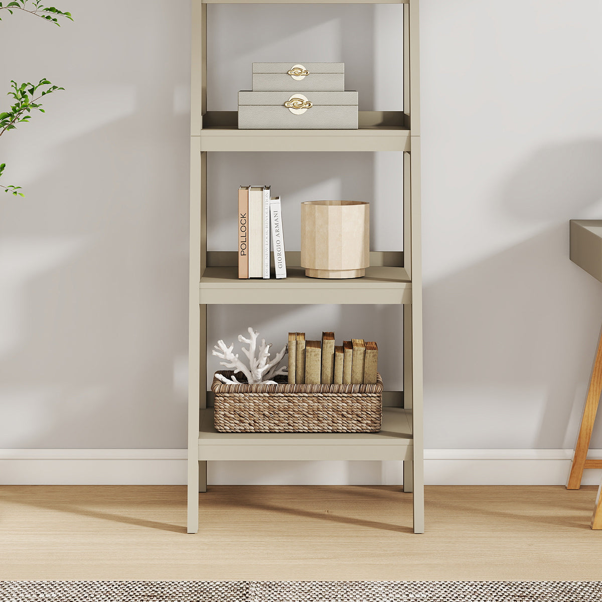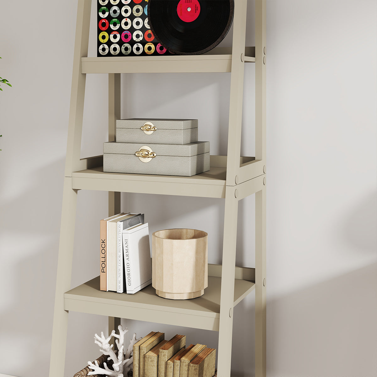 Mid-Century Style 4 Tier Taupe Painted Wooden Ladder Shelf - 178cm