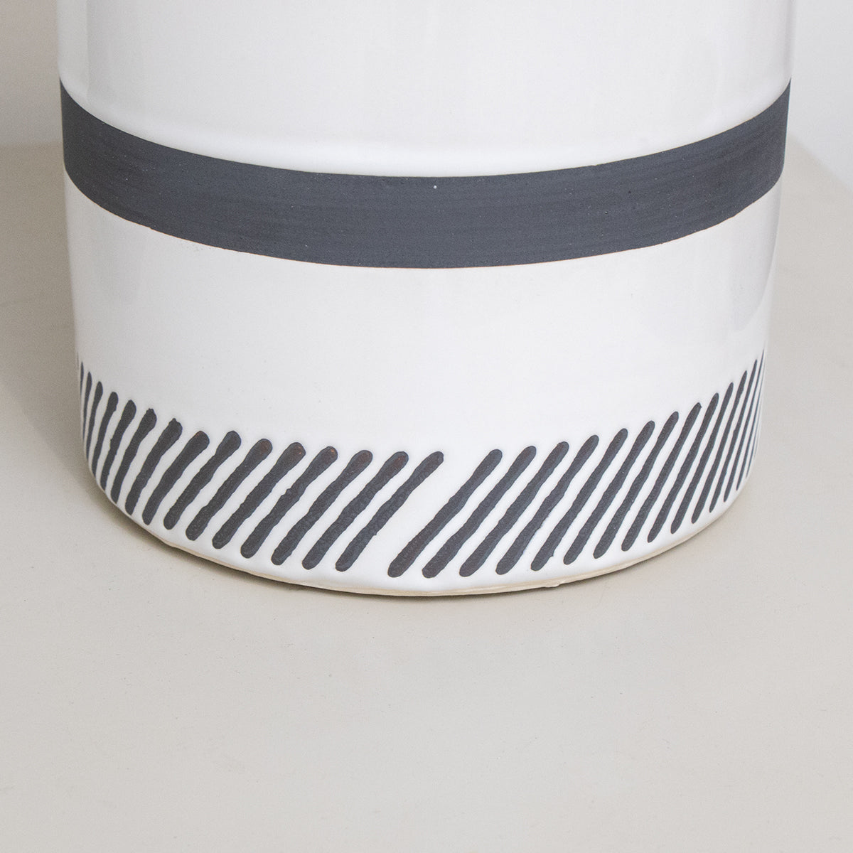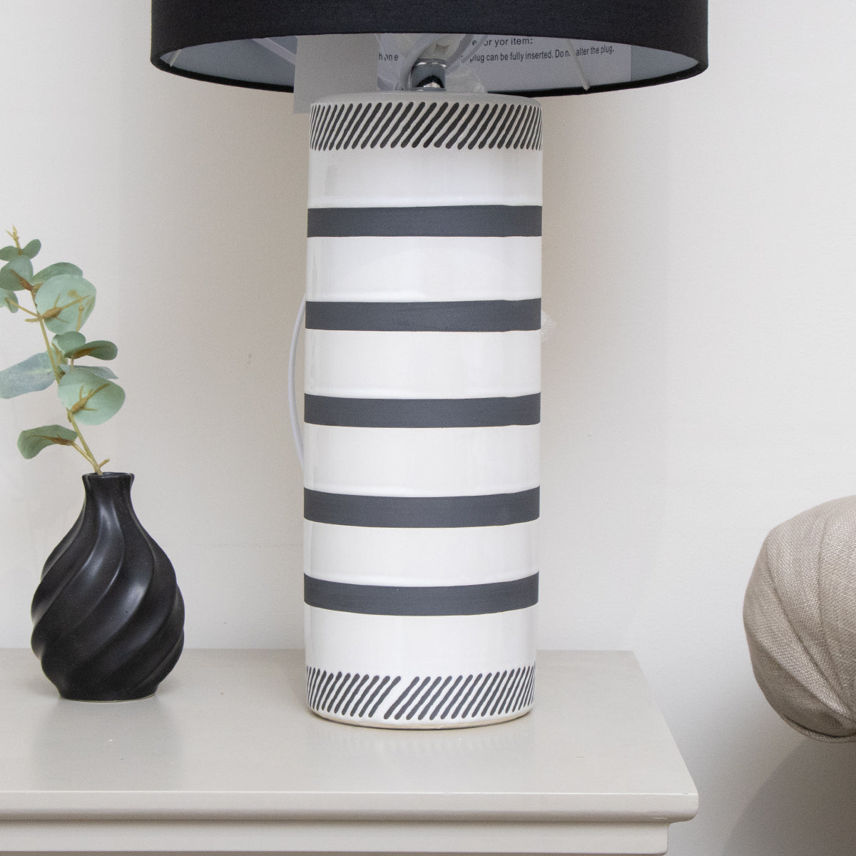 Monochrome Black & White Striped Table Lamp with Black Shade