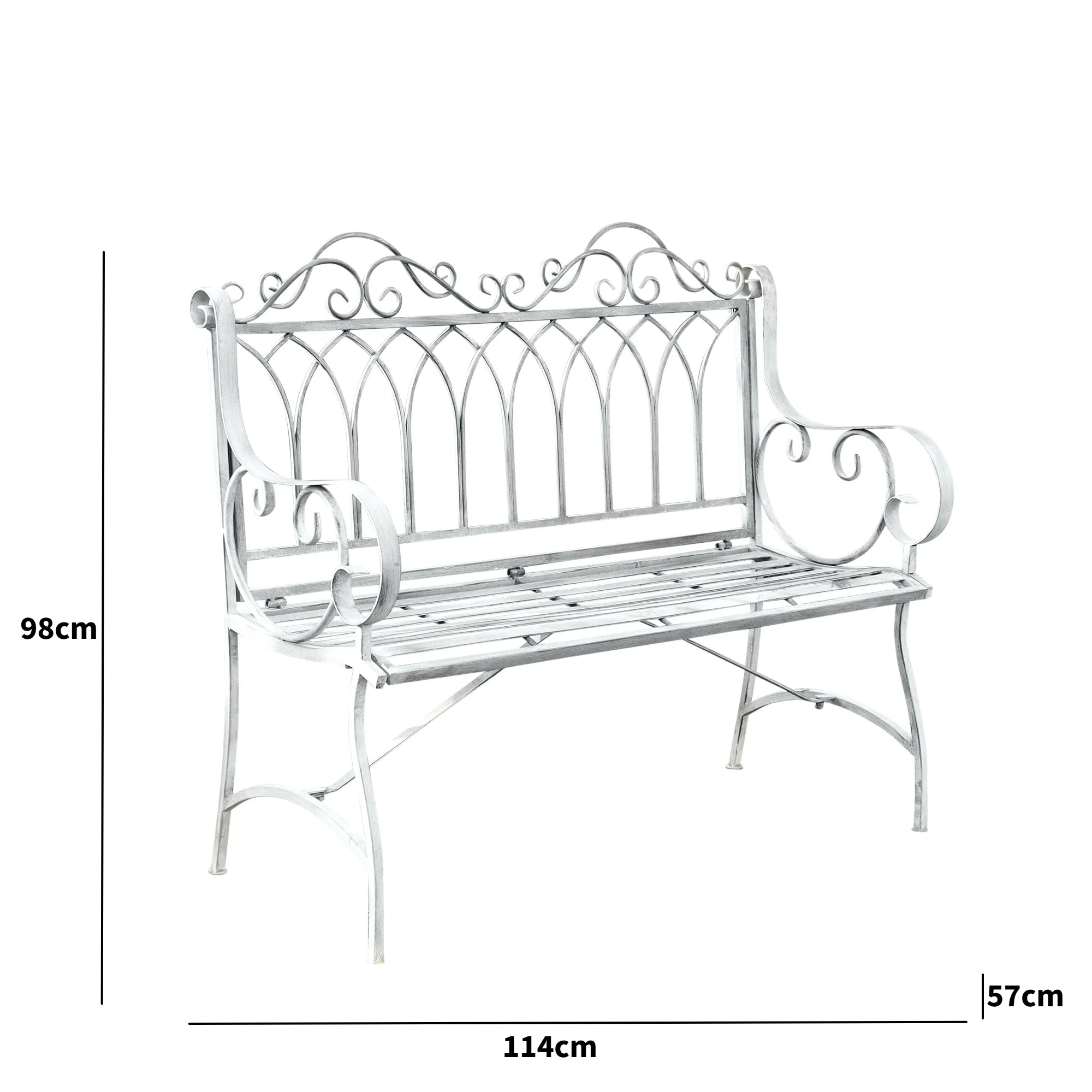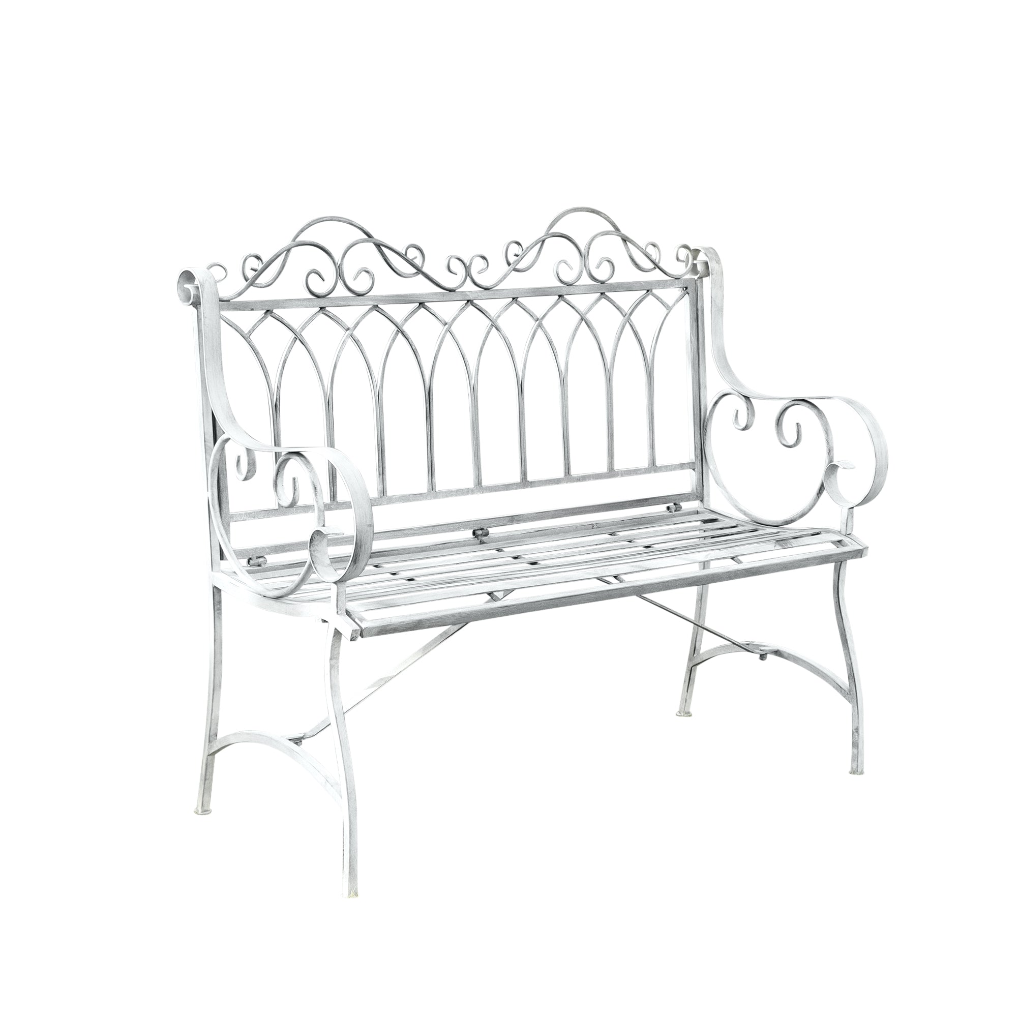 Ornate Distressed Grey Metal Garden Bench 98cm x 114cm