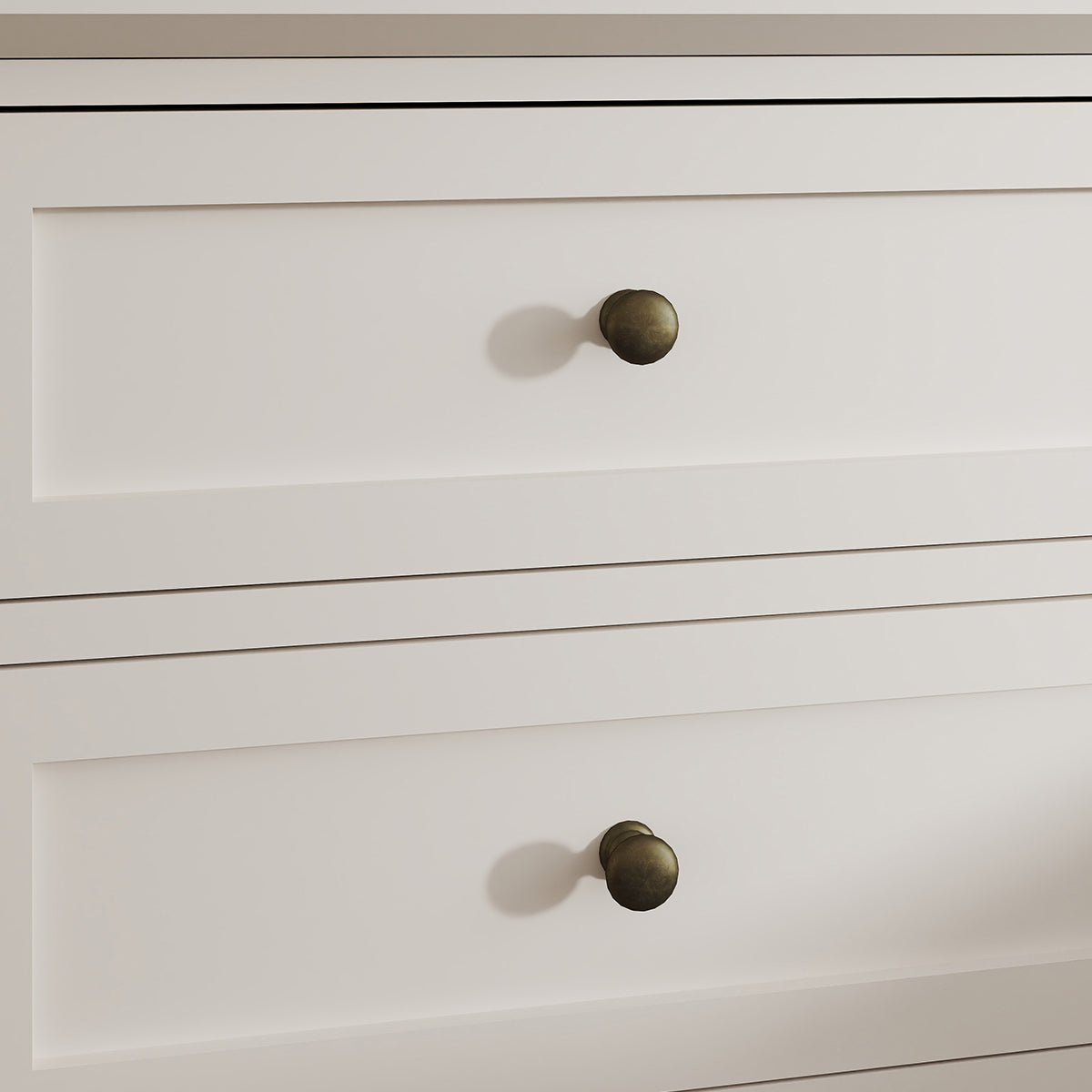 This Pair of 3 Drawer Bedside Table from the Rowley Pale Cream Range has a lovely cosy and neutral appeal with it's soft pale cream finish and will add a warm glow to your home, adorned with beautiful rustic round shaped Drawer Knobs which adds a sense of sleekness to your Furniture.