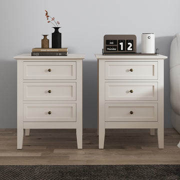 Pair of 3 Drawer Bedside Table - Rowley Pale Cream Range