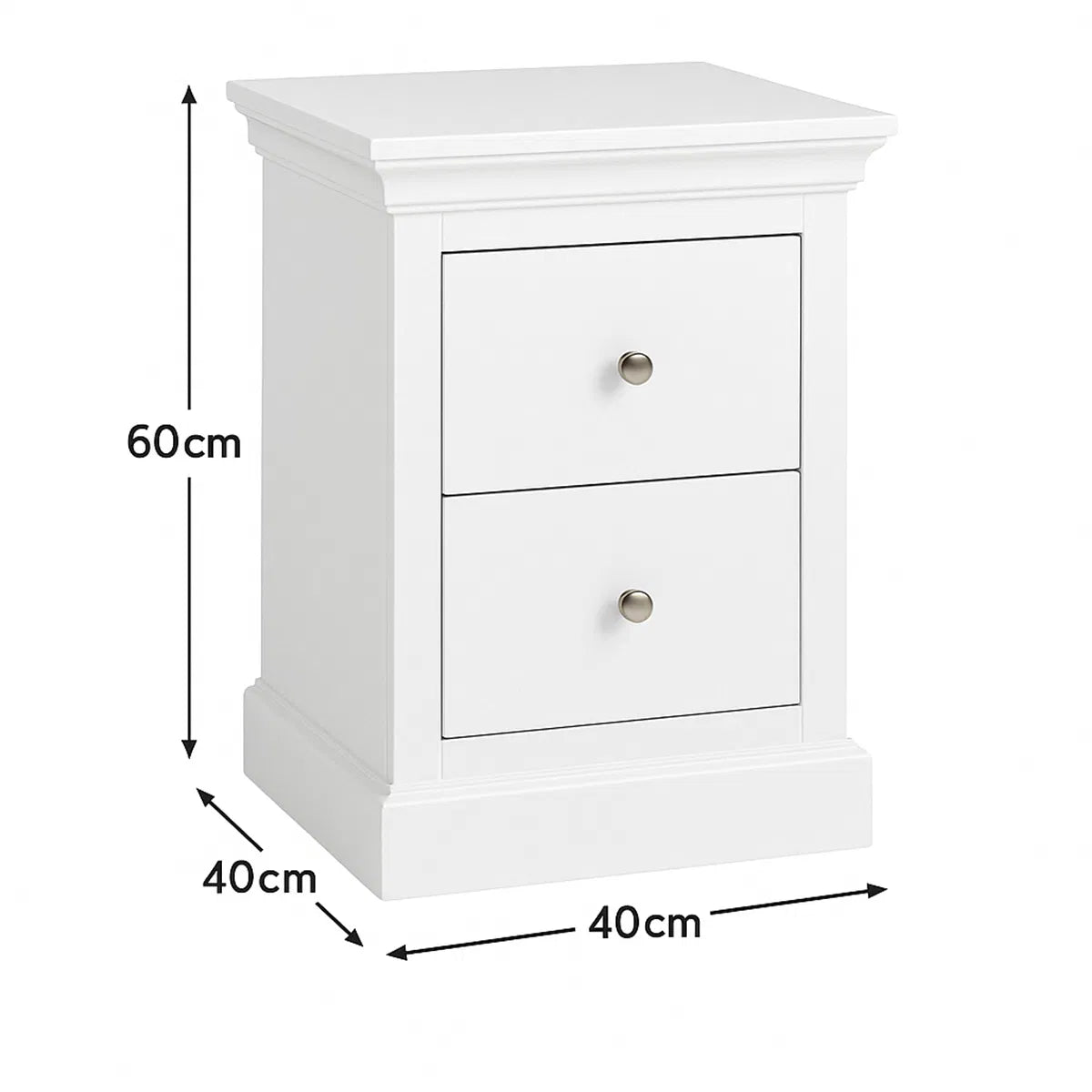 This Pair of White 2 Drawer Bedside Tables from the Slimline Haxey White Range creates a calm setting with everyday practicality. Finished in a crisp white tone, these bedside tables bring a fresh, clean look that effortlessly compliments both classic and contemporary interiors. Their compact yet functional design makes them ideal for bedrooms of all sizes. Each bedside table features two smoothly operating drawers, providing ample storage for night-time essentials such as books, glasses, chargers and personal items. The simple round metal drawer knobs adds a subtle decorative detail, while the stepped base and framed fronts enhance its overall appearance. Browse our full Furniture collection to view more!