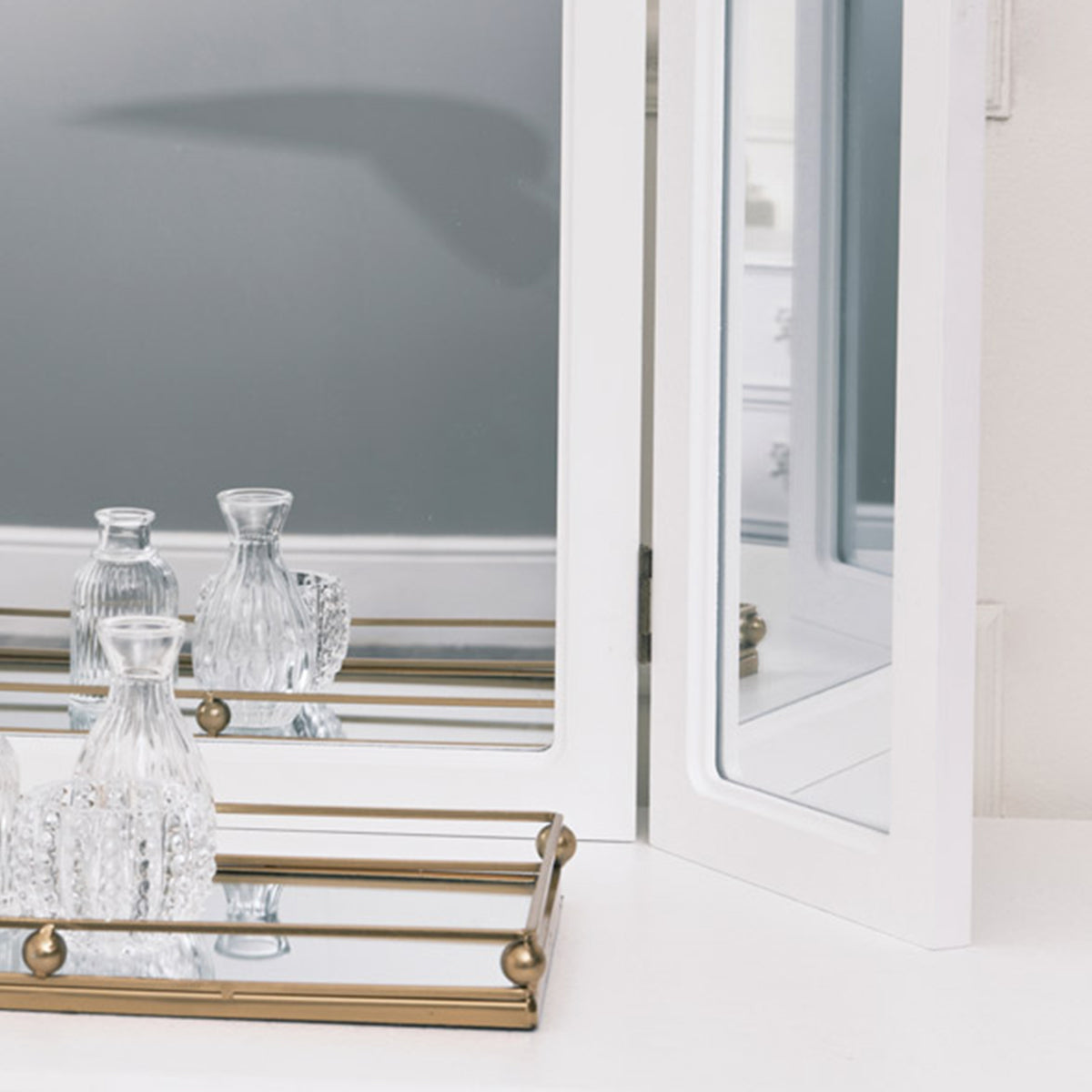 This White table top triple mirror would add a touch of glamour to any room and is the perfect mirror choice for lovers of vintage, French inspired designs.