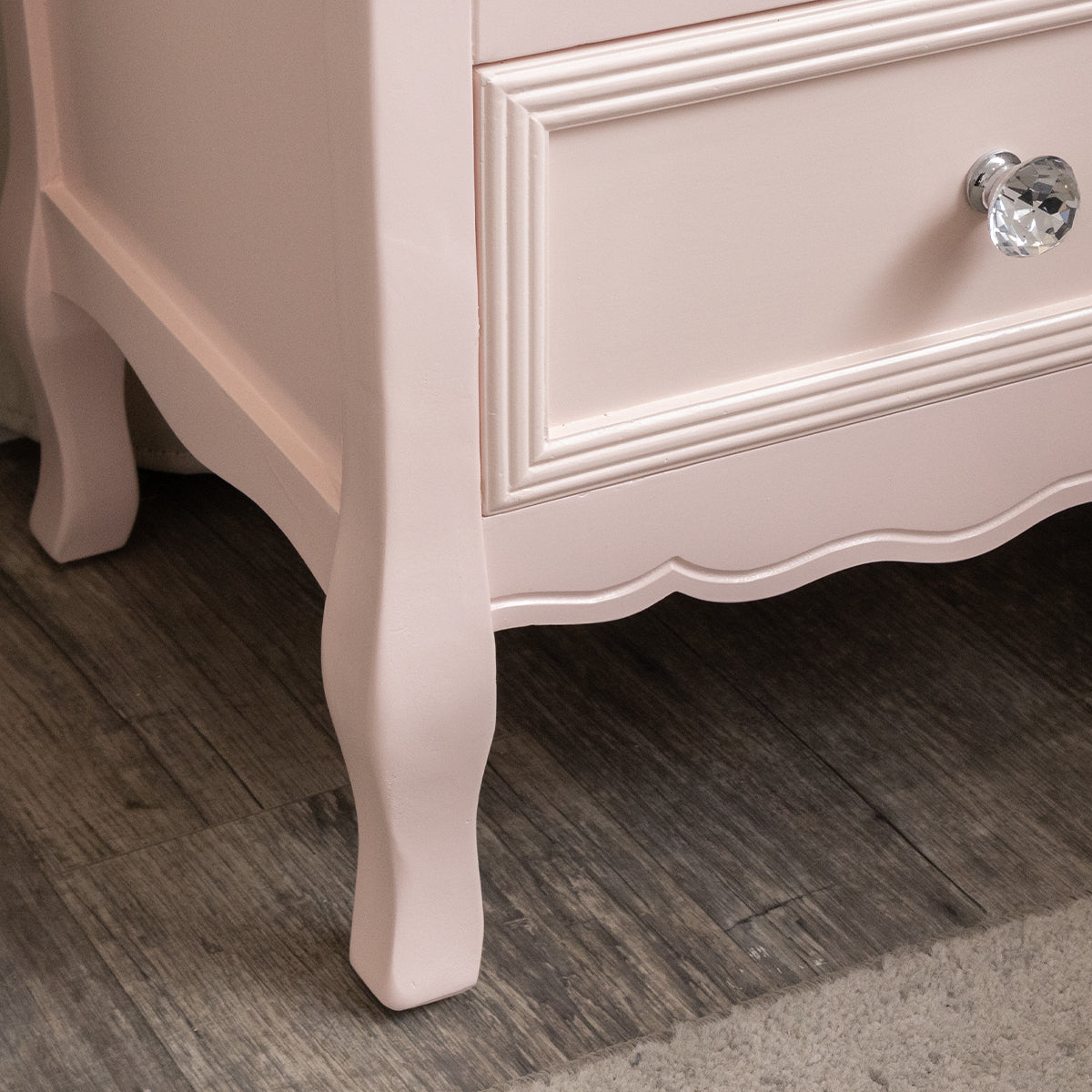 This Pink 3 Drawer Bedside Table from the Sophia Pink Range is designed beautifully with a soft pastel pink finish with contrasting glass drawer knobs. Featuring three spacious drawers perfect for storing clothing, linens, accessories and more keeping your home tidy and organised. The gently curved legs and scalloped base adds a french inspired feel to your home. Making it an ideal fit for vintage, shabby chic and modern interiors. Crafted from wood and metal suited for children’s rooms, guests and master rooms! Whether paired with matching pieces from this range or styled with other contrasting decor pieces. Bringing both personality and practicality to your space. It’s spacious tabletop is also perfect for displaying flowers, photos, candles, books and more! Browse our full Furniture collection to view more!