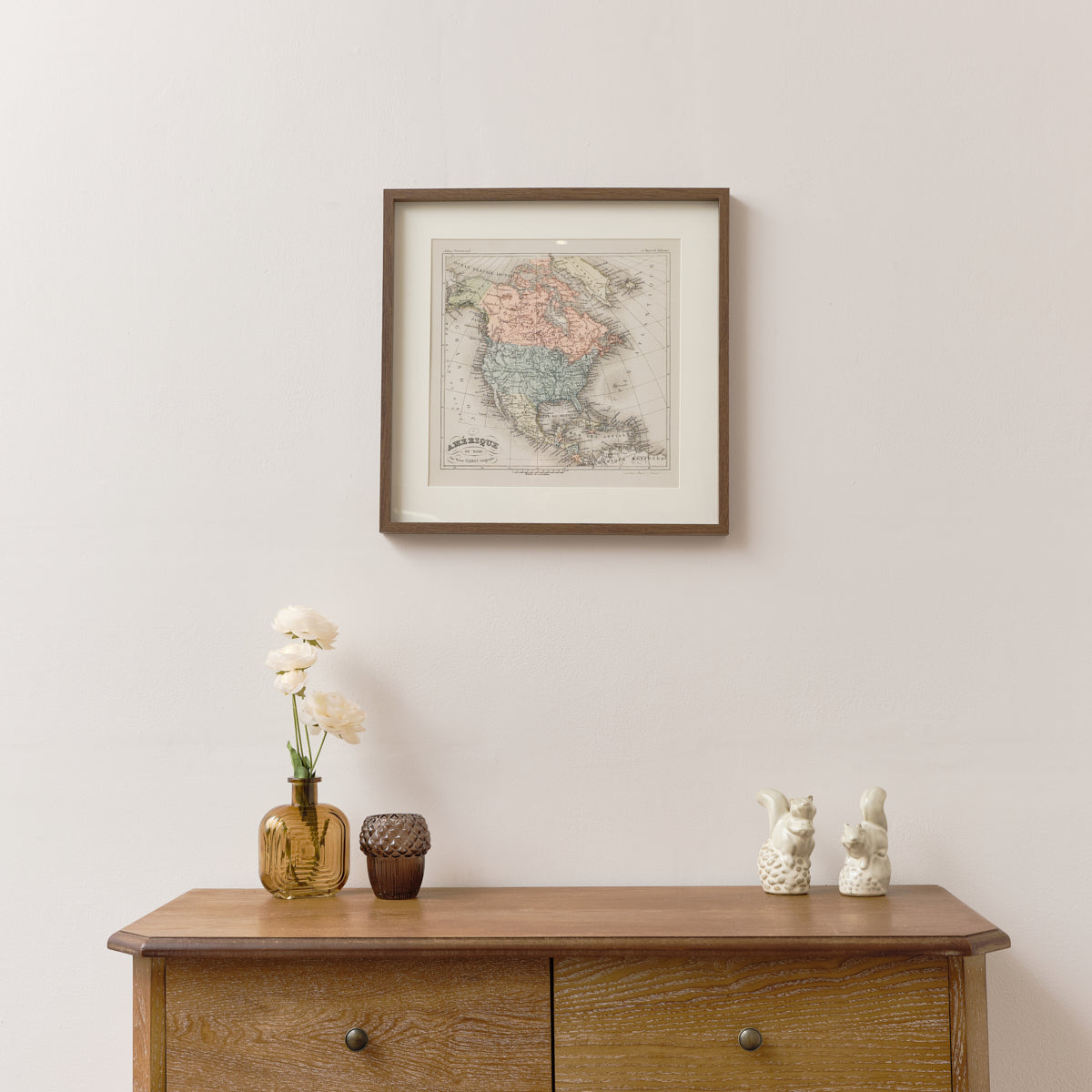 This Rustic America Map Print Framed Wall Art - 40cm is a beautiful, colourful vintage style wall decor choice, ideal for fans of rustic finishes and map displays. Made of wood, glass, paper and iron, this wall print has a brown, aged design with a rustic finish.