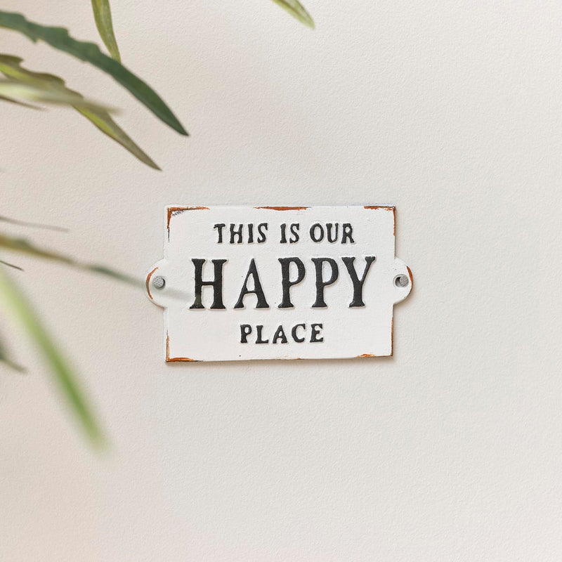 Rustic White Metal 'Happy Place' Wall Sign