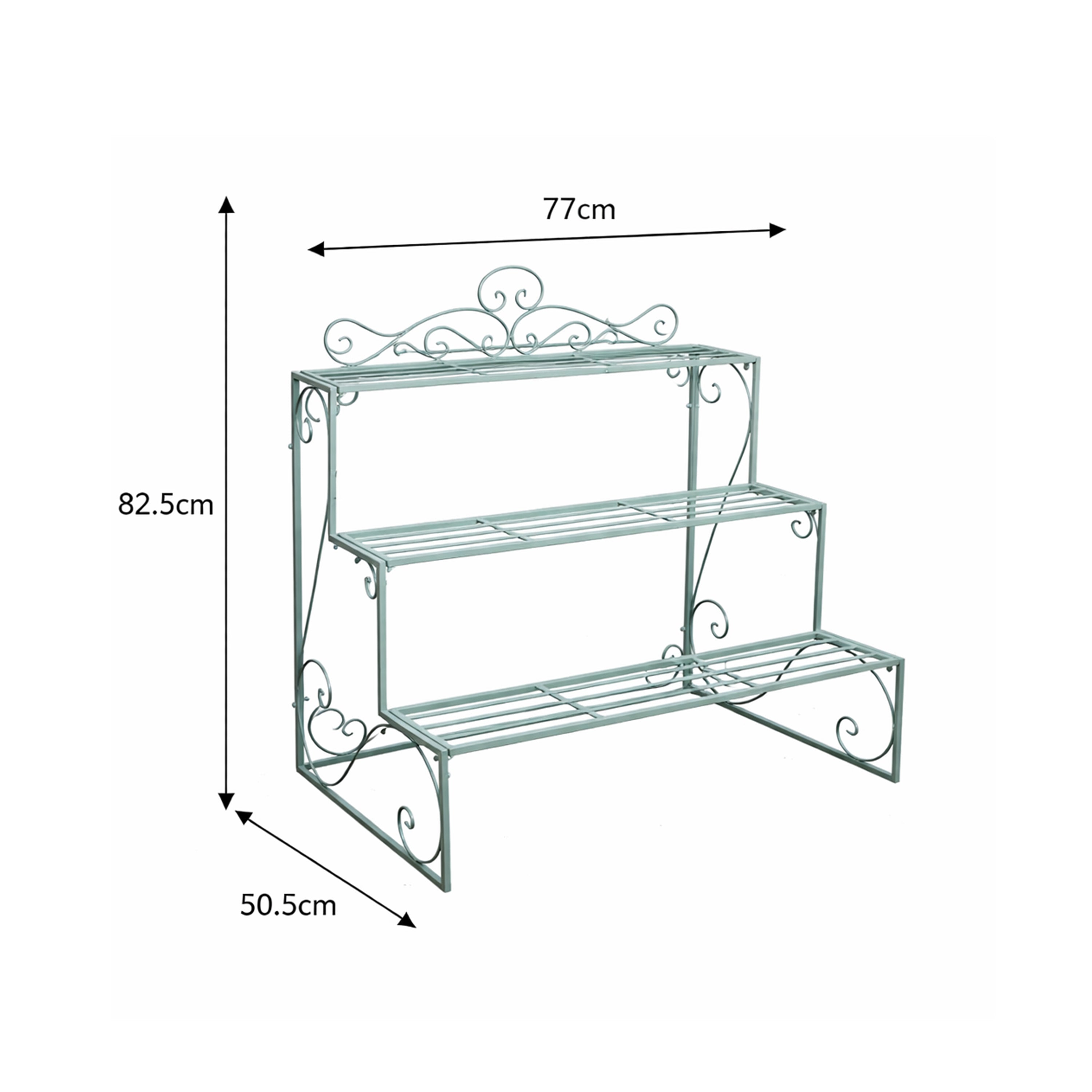 Sage Green Metal Three Tier Plant Theatre Stand