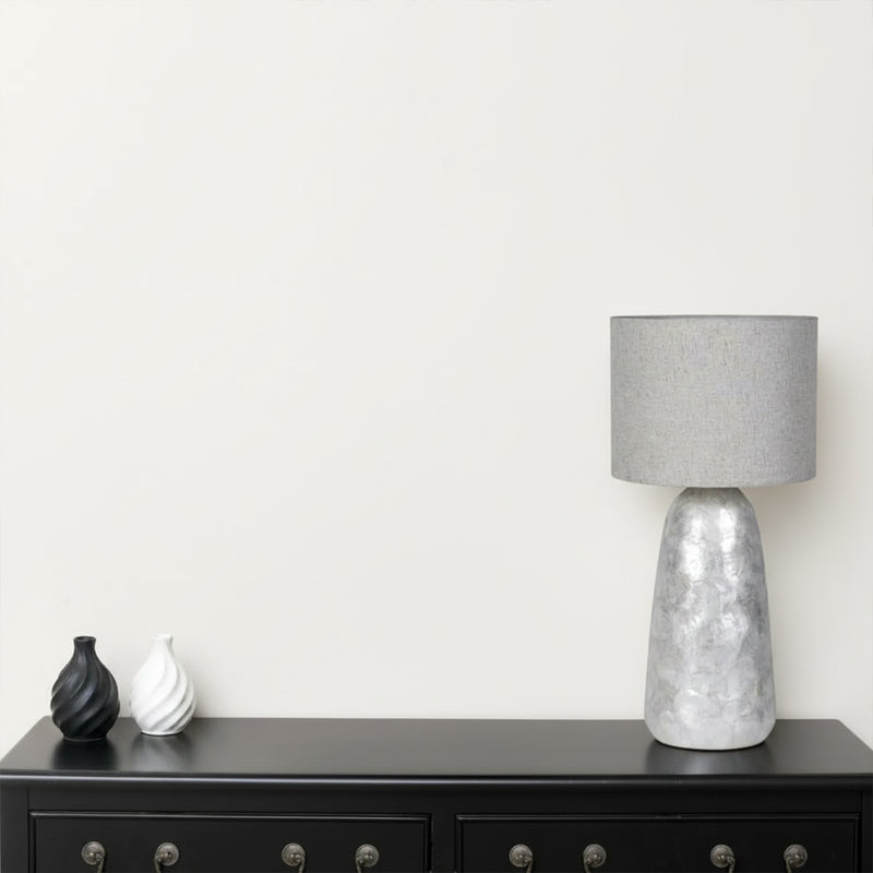 Silver & Grey Pearl Table Lamp with Linen Shade