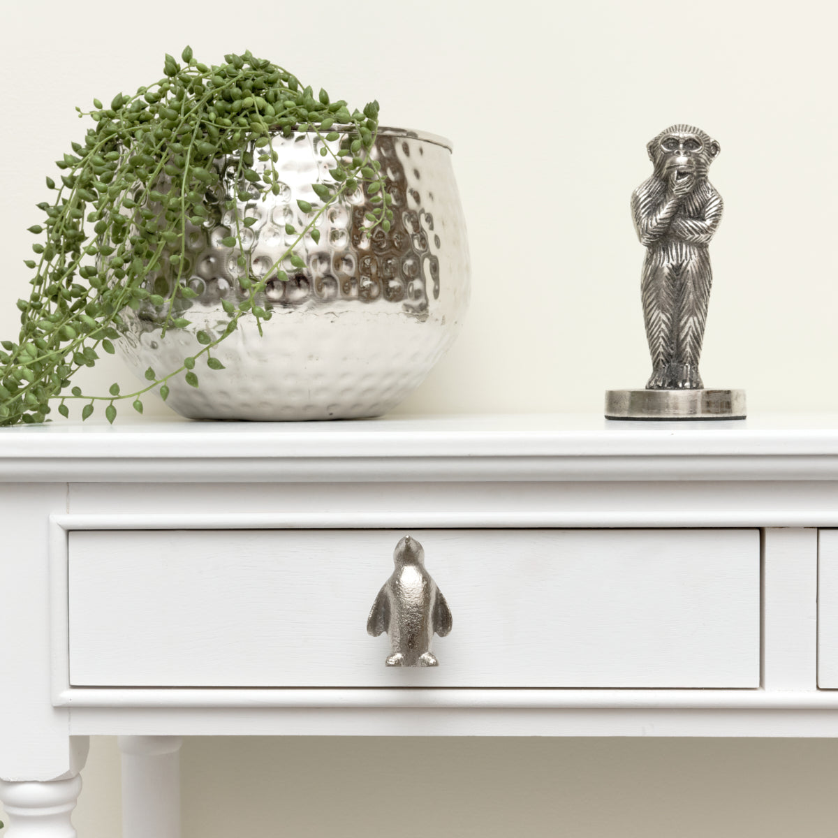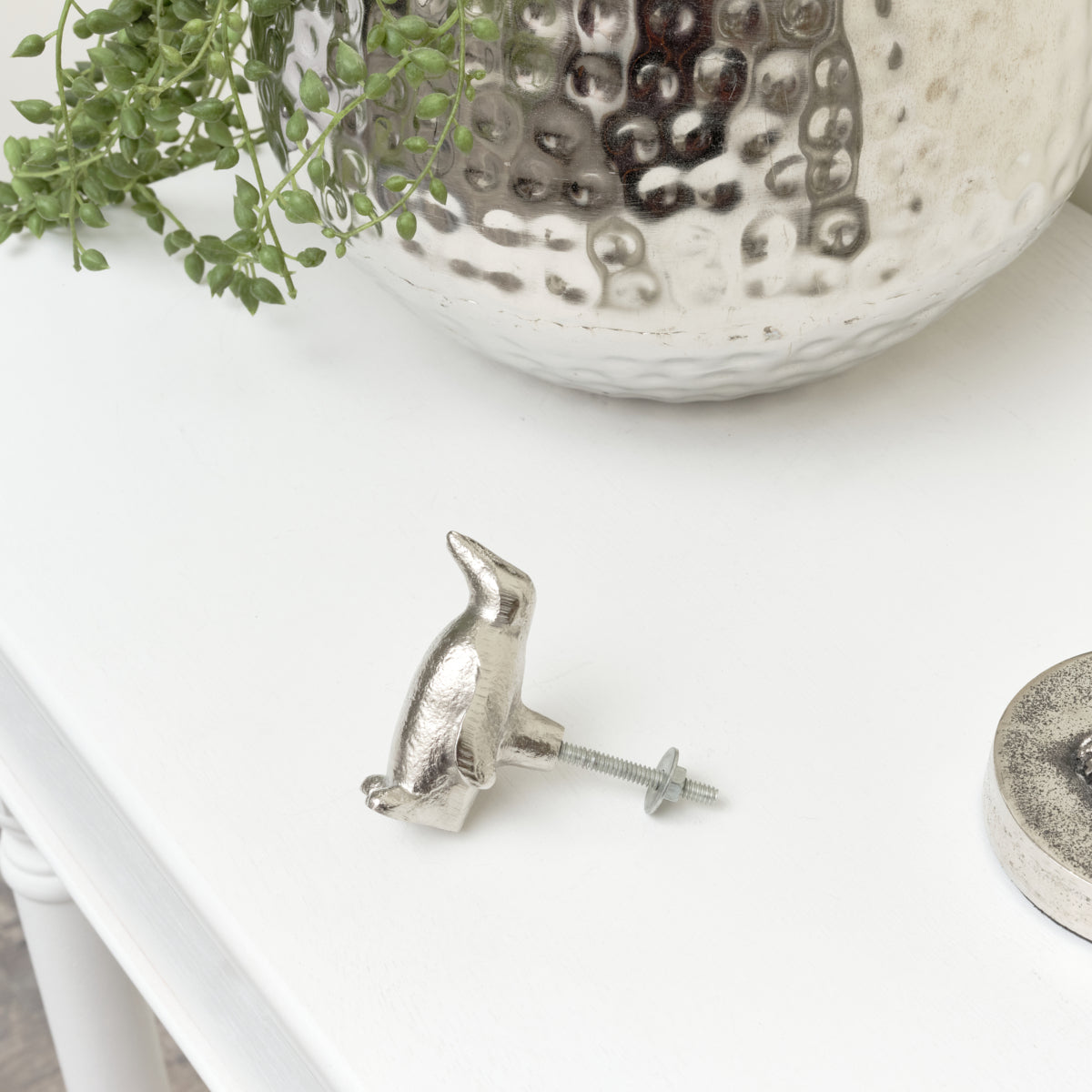 A stylish yet quirky decor choice for those who upcycle their furniture and fans of diy. Due to its penguin design and silver finish, this drawer handle is best suited to eclectic, whimsical or glamorous style spaces.