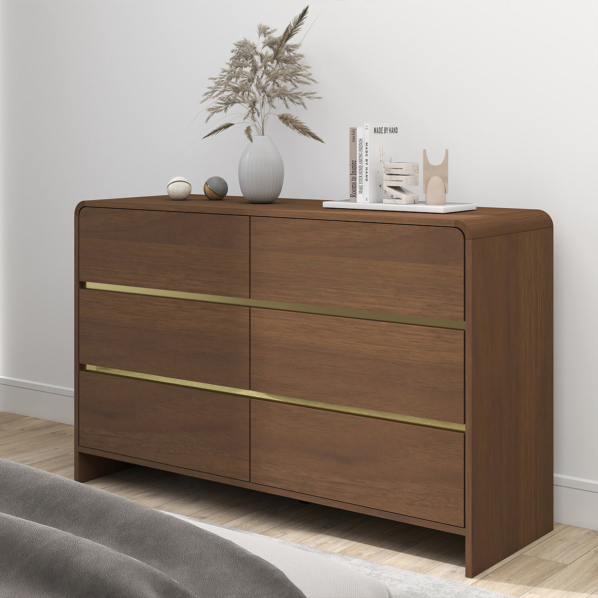 The six spacious drawers offer ample storage, keeping your essentials neatly organised while maintaining a refined and stylish aesthetic. Crafted for durability, this chest is perfect for both contemporary and modern interiors.