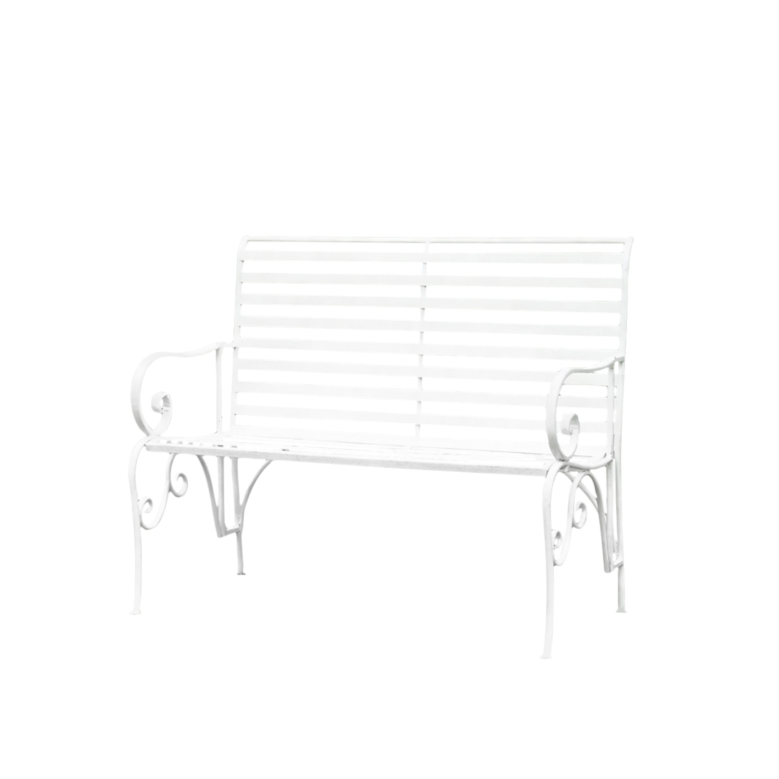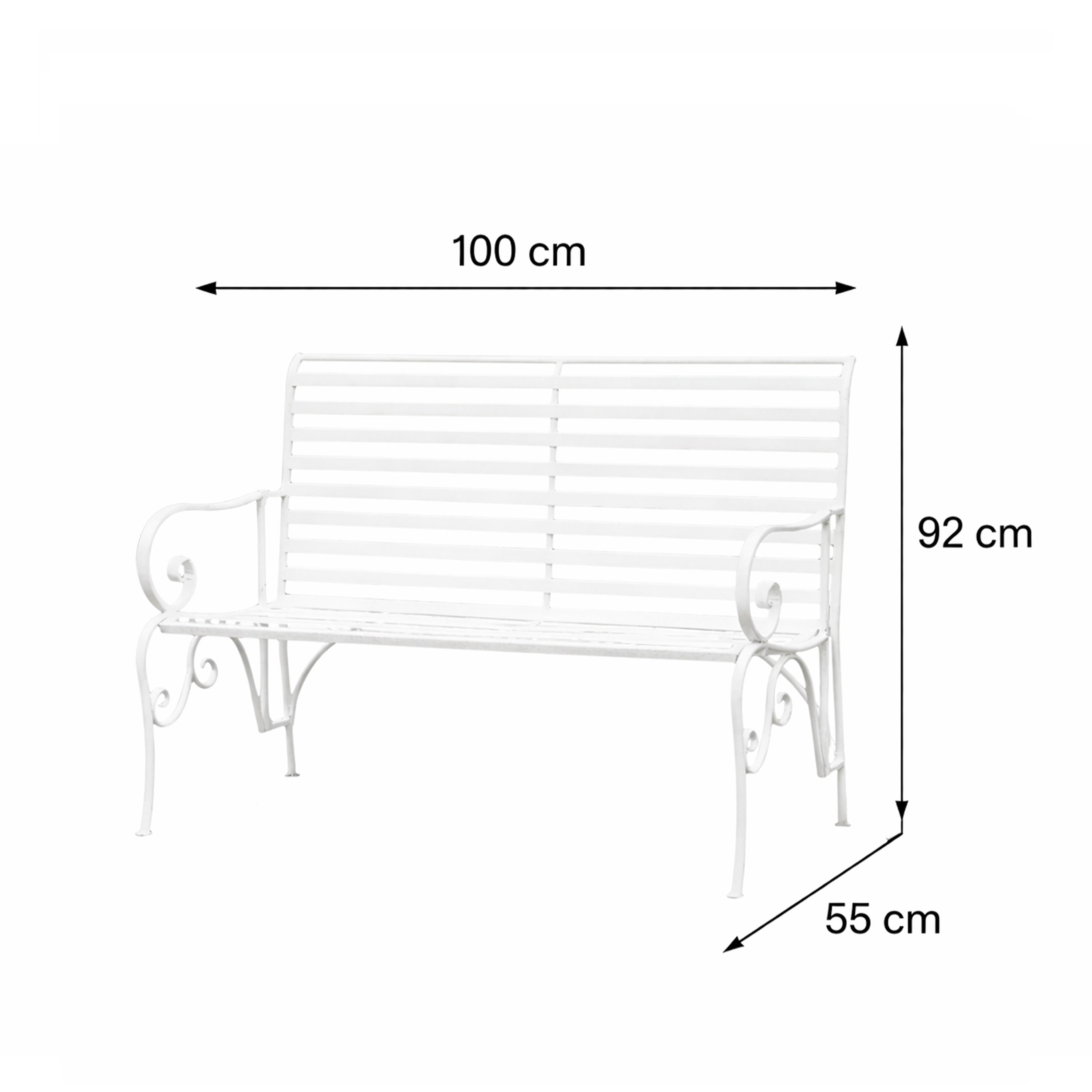 White Metal Ornate Distressed Garden Bench - 100cm x 92cm