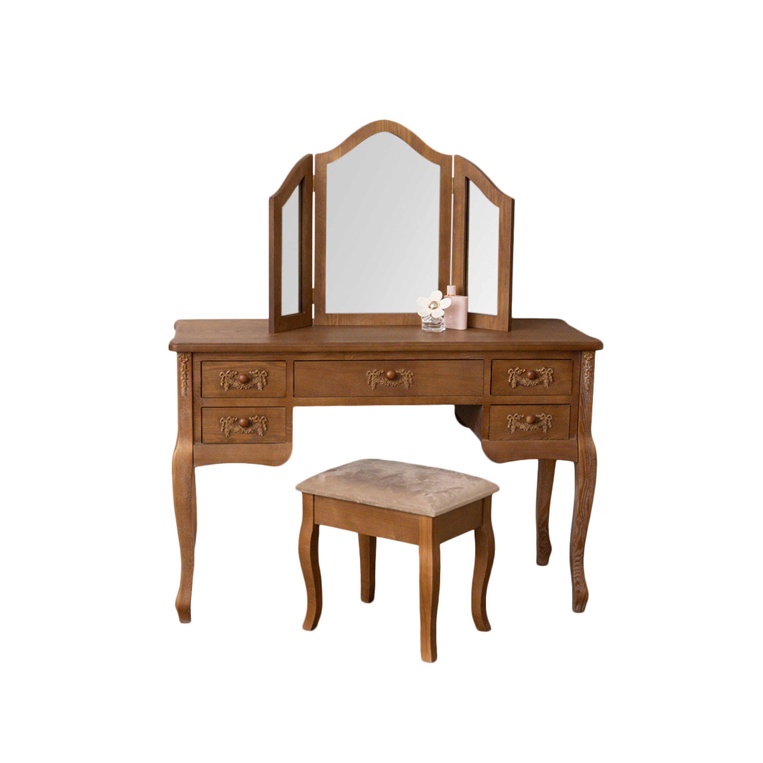 Wooden Dressing Table Desk with Triple Mirror and Stool - Pays Du Bois Range