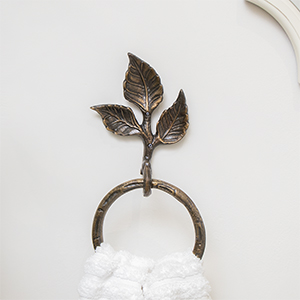 This Antique Brass Leaf Detail Textured Toilet Roll Holder is a stylish yet quirky home decor choice, perfect for fans of nature inspired accessories. Made of iron, this toilet roll holder has a leaf design, with stick detail for hold toilet roll. It comes with a distressed, brassy gold finish and two holes for wall mounting.