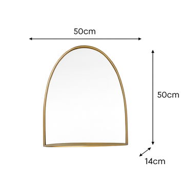 This Arched Gold Mirror With Mirrored Shelf 50cm x 60cm is a well made, glam inspired wall storage mirror ideal for lovers of metallic style and arched mirrors. Made of metal and glass, this mirror has an arched design and comes with a gold finish with a mirrored storage shelf.