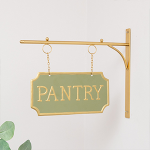 This Black and White Metal Wall Mounted Hanging Pantry Sign is a quirky wall decor pick for fans of Black and White decor. Made of metal, this sign has a curved rectangular shape. It comes with embossed lettering spelling ‘Pantry’ and a Black and White painted finish.