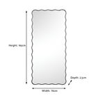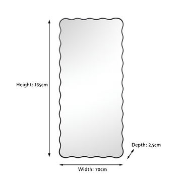 This Black Full Length Wavy Mirror 70cm x 165cm is an eye catching, retro inspired large mirror that could be wall mounted or used as a leaner mirror. Made of wood, glass and metal, this mirror has a slim, wavy wooden frame and comes with a Black painted finish. It can be wall hung both vertically and horizontally via wall hooks on the back of the mirror.