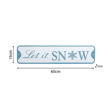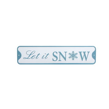 This Blue & White Let It Snow Decorative Christmas Sign is a quirky wall decor pick for fans of blue and white decor. Made of metal, this sign has a rectangular shape. It comes with embossed lettering spelling ‘Let It Snow’ and a white and blue painted finish.