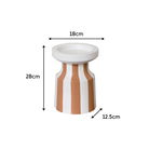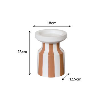 This Burnt Orange Striped Pillar Candle Holder - 18cm is a colourful yet elegant home accessory, perfect for lovers of everything orange and quality candlesticks. Crafted from metal, this candle holder has a round, tapered design and a matching circular base. It is completed with a burnt orange striped, hand painted design.