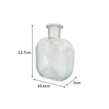 This Clear Glass Small Square Shaped Vase 13.7cm is a pretty, unique style accessory ideal for fans of shabby chic style and lovely glassware. Made of glass, this has a square, vase shape with a fluted neck. Perfect for displaying small flowers or candles.