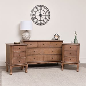 This Dressing Table Set includes a matching Stool, Triple mirror and pair of Bedside Tables.