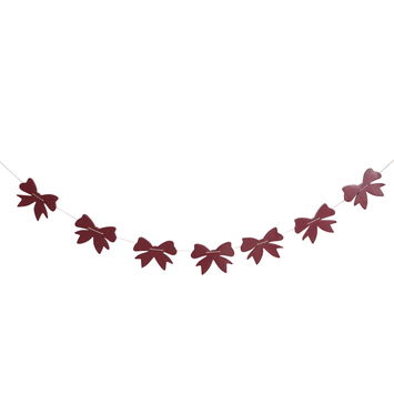 This Distressed Dark Red Wooden Bow Garland - 120cm is perfect for adding a touch of rustic glamour to your festive decor. Warm and neutral wooden bow strung along a garland perfect for decorating your home.