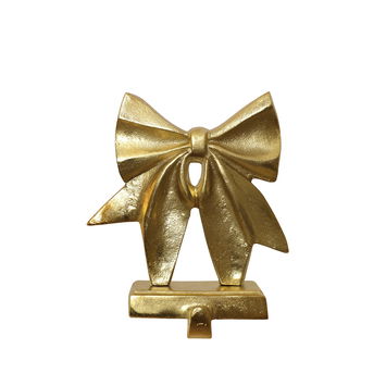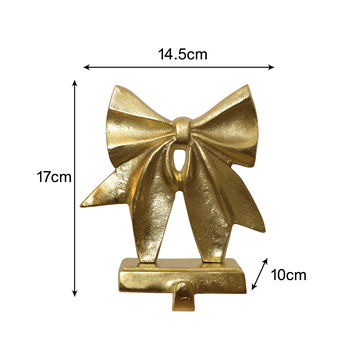 This Gold Bow Christmas Stocking Hook is an eye-catching, festive storage choice, perfect for lovers of vintage inspired design and gold decor. Made of metal, this stocking hook has a classic bow shaped design and comes with a weighted base and hanging hook. It is completed with a gold finish.