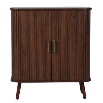 This Large 2 Sliding Door Wooden Reeded Sideboard is a stunning, beautiful storage choice, perfect for fans of wooden furniture and dark interiors. Made from wood and metal, it comes with Sliding style doors and reeded detailing, a dark wood finish and gold metal handles.